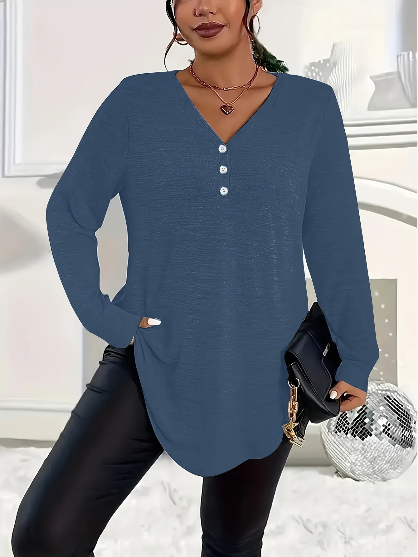 Women's Plus Size V-Neck Long Sleeve Top Polyester Knit Solid Color Fall Winter