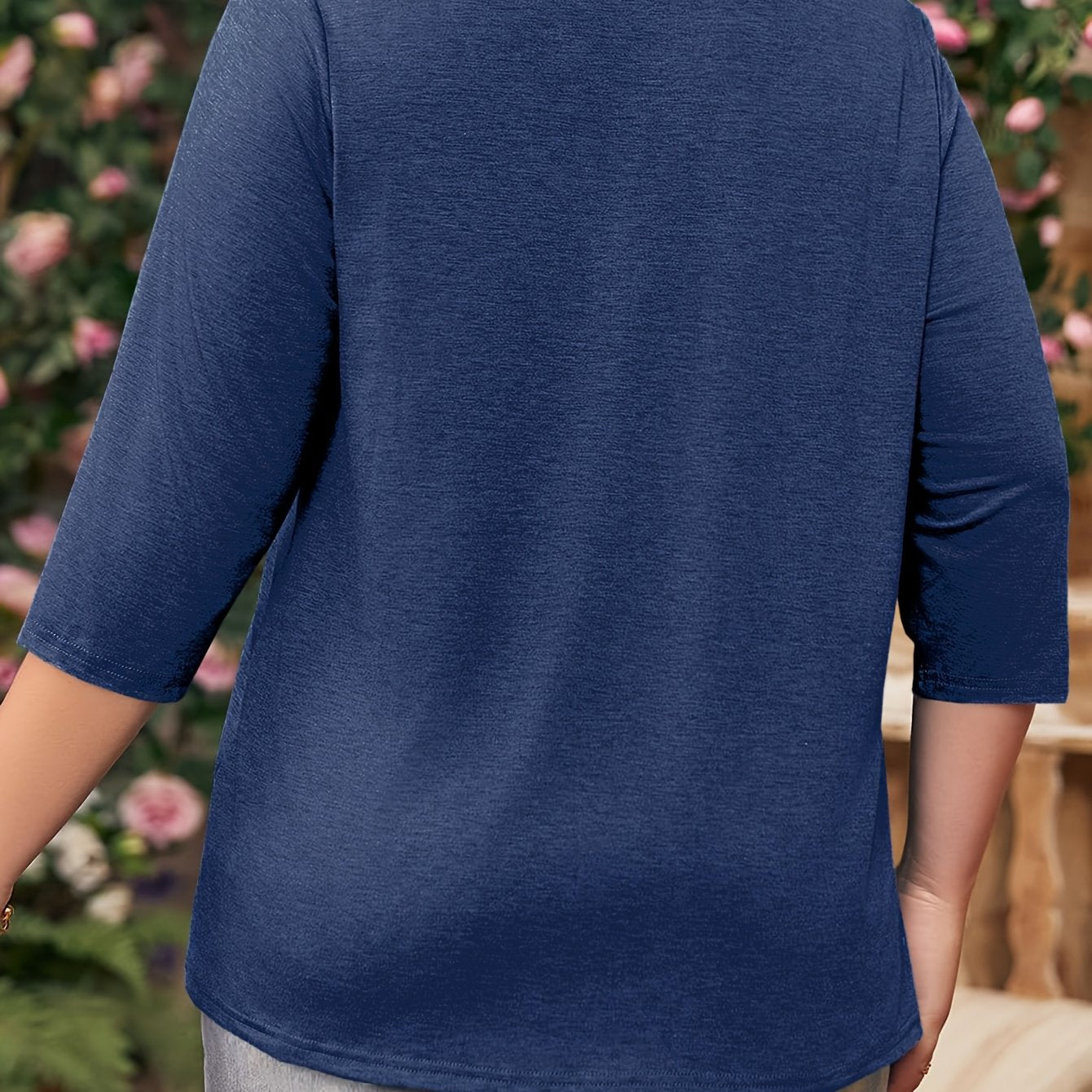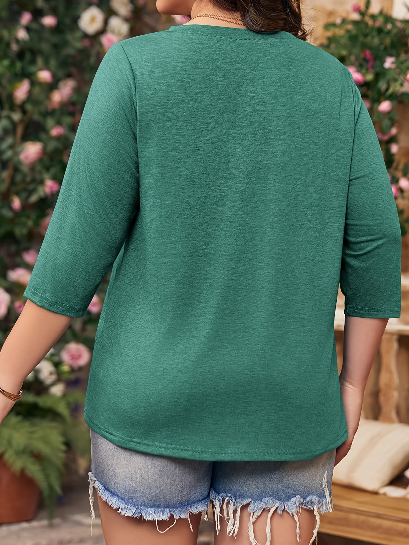 Women's Plus Size V-Neck Tunic Top 3/4 Sleeve Button Front Casual Breathable