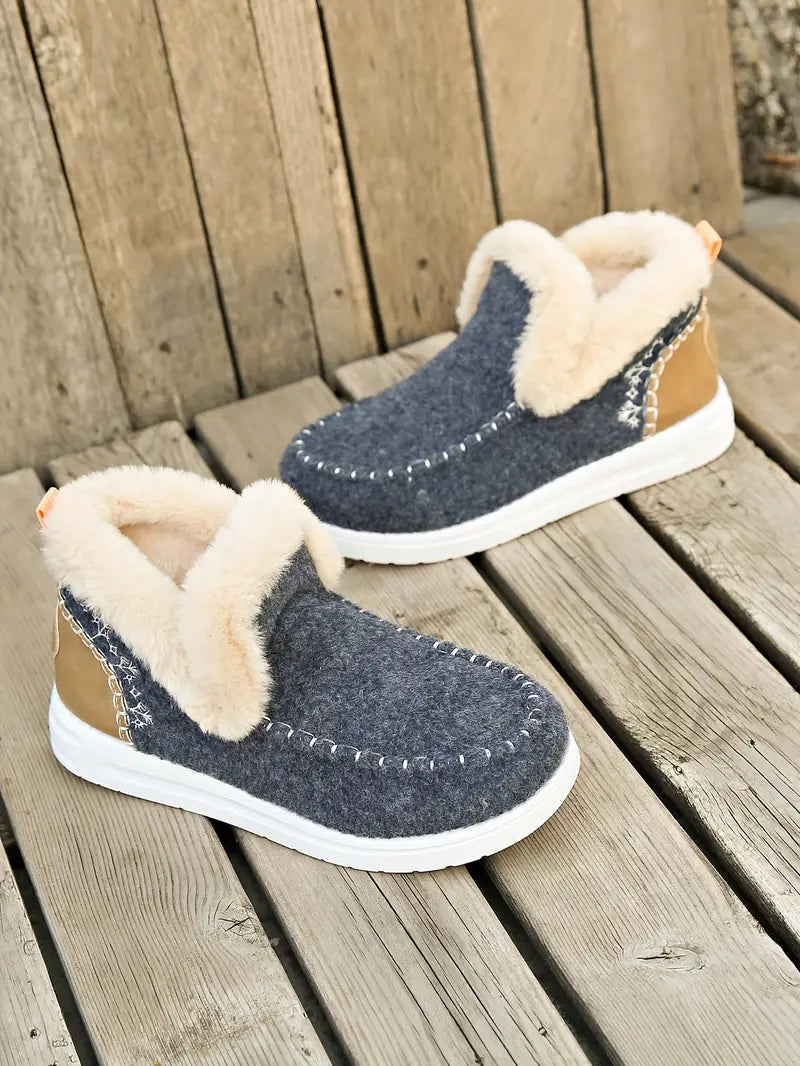Women's Plush-Lined Ankle Boots Warm Faux Furry Casual Slip-On Shoes