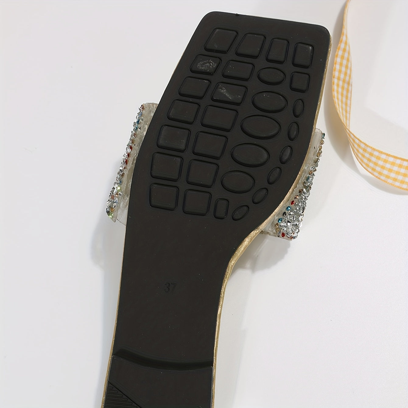 Women's Rhinestone Square Toe Flat Sandals Slip-On Summer Open Toe Ankle Strap