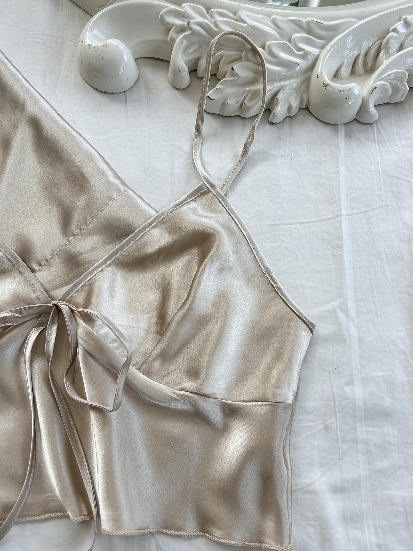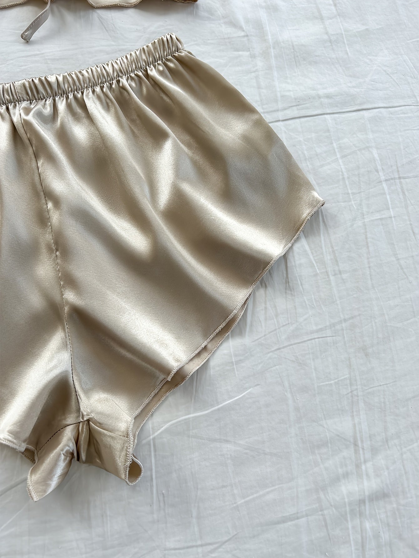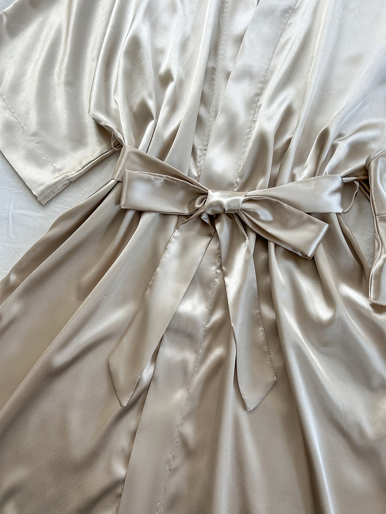 Women's Satin Pajama Set Includes V-Neck Robe with Sash Mini Bralette and Shorts Solid Color Polyester Fall Winter Sleepwear