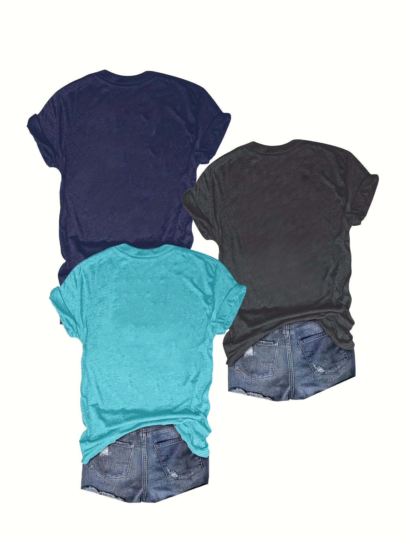 Women's Short Sleeve Graphic T-Shirts Pack with Humorous Quotes Navy Turquoise Black