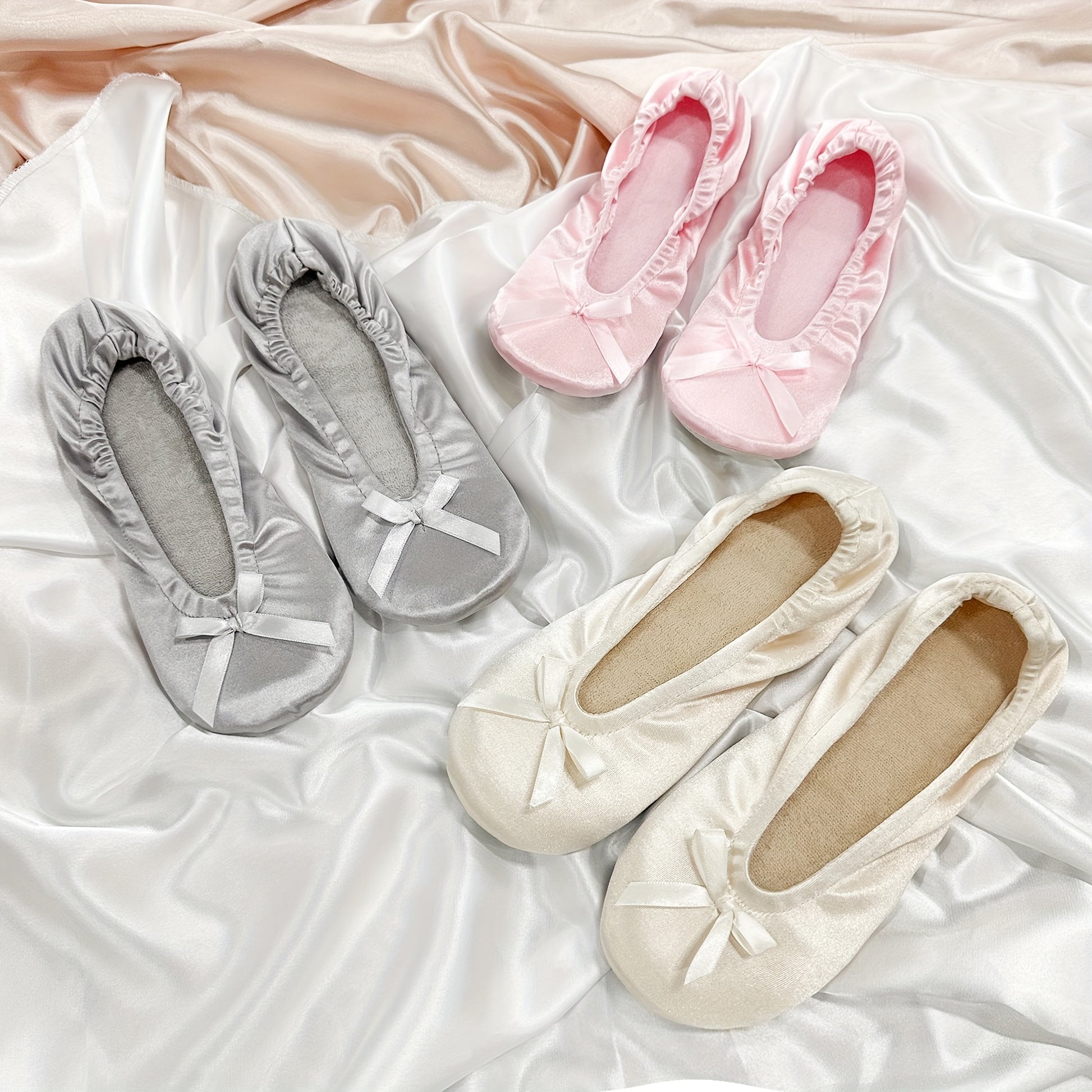 Women’s Slip-On Ballet Flats Light Gray Pink Beige White Indoor Shoes Comfortable Rounded Toe