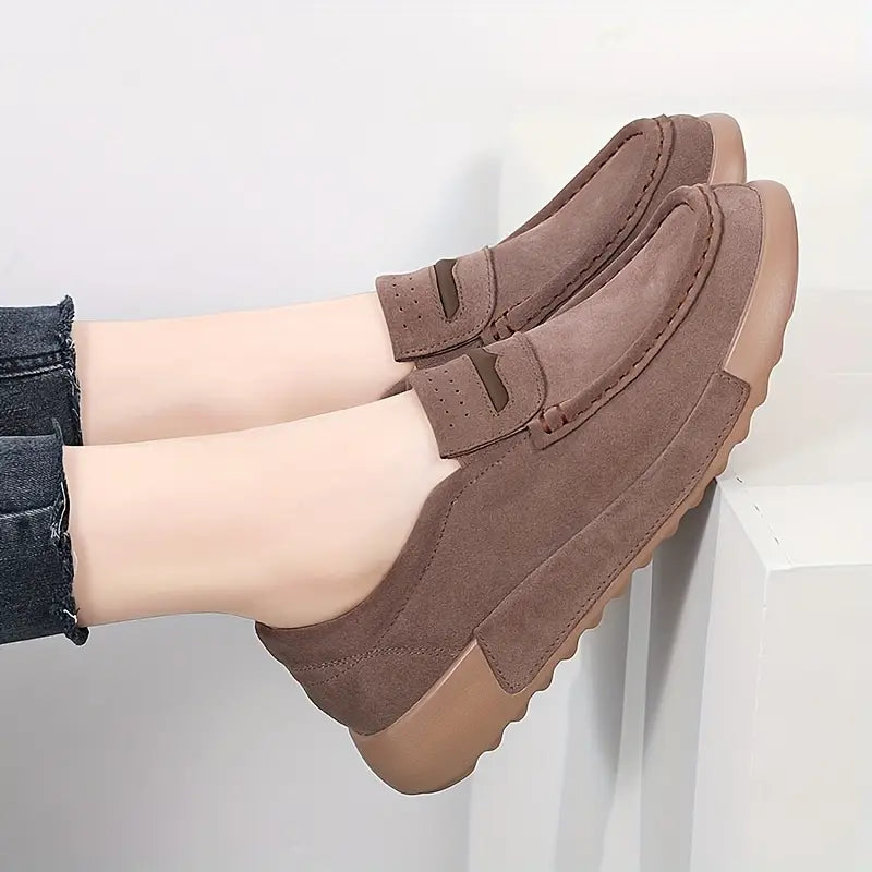 Women's Solid Color Slip-On Loafers with Round Toe Casual Low-Top Shoes