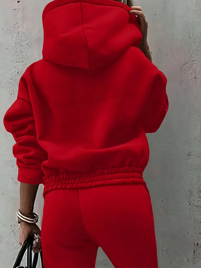 Women's Solid Color Polyester Loungewear Set with Hoodie and Jogger Pants
