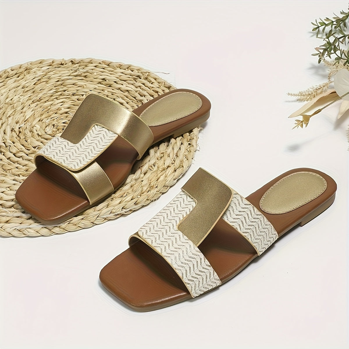 Women's Square-Toe Slide Sandals Two-Tone Gold and White Casual Summer