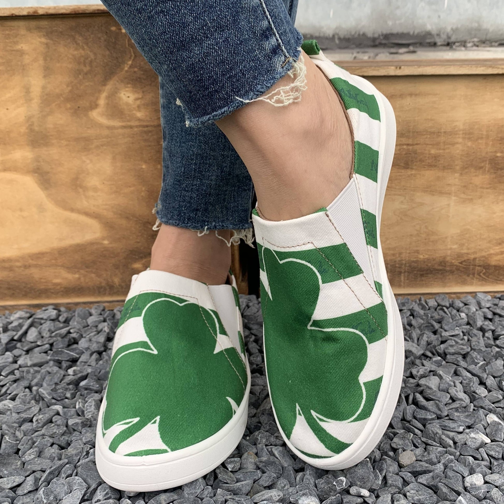 Women's Striped Clover Slip-On Casual Shoes with Soft Soles