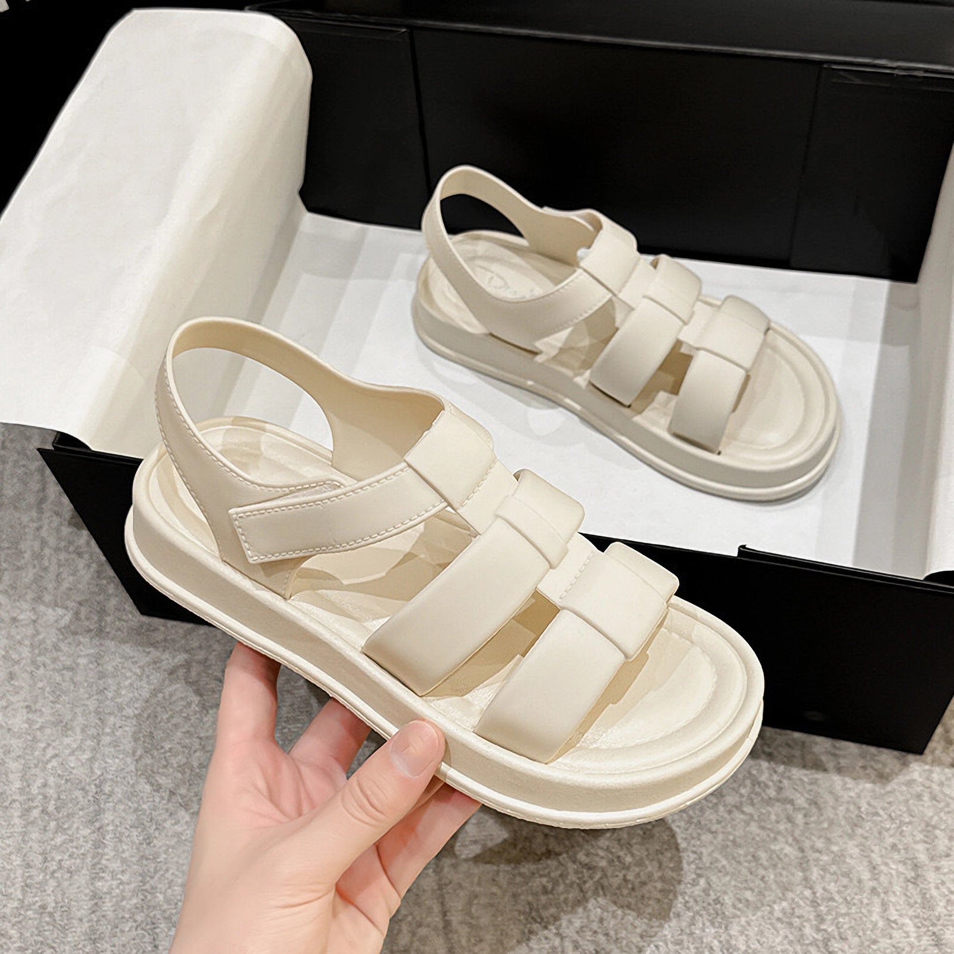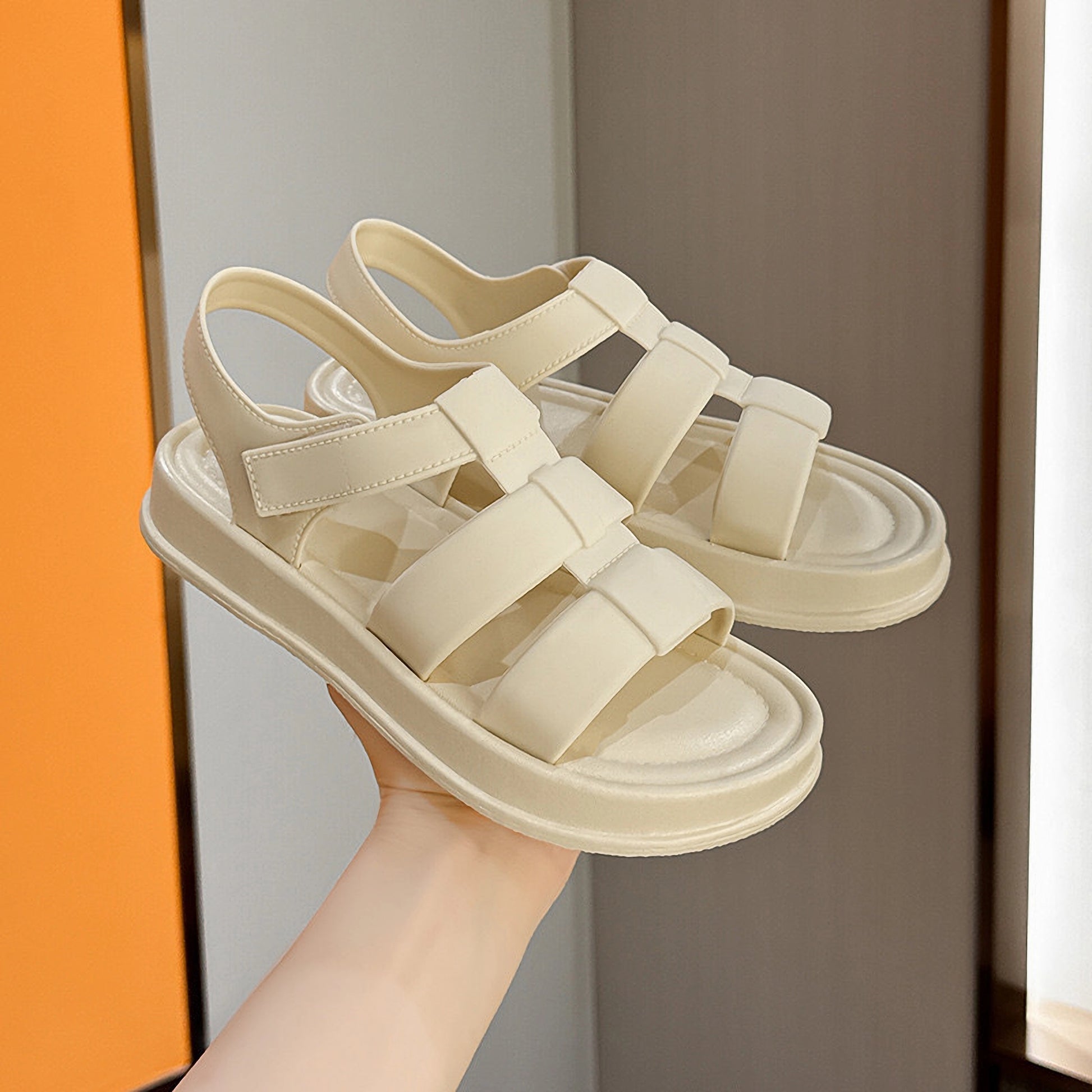 Women's Summer PVC Sandals Open Toe Flat Heel Casual with Hook-and-Loop Closure
