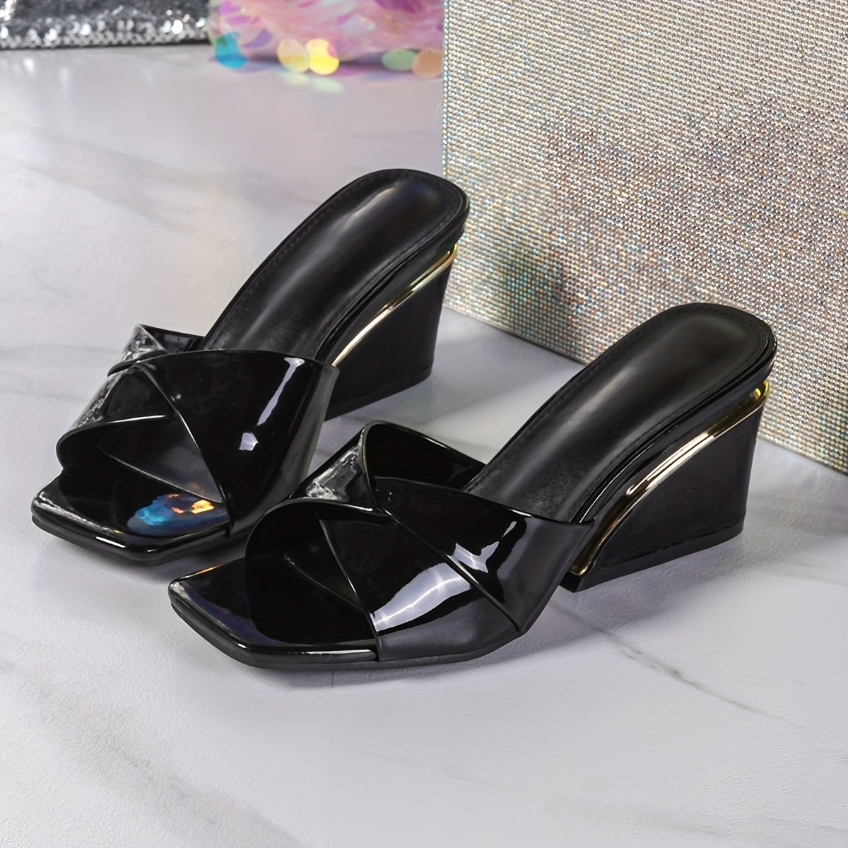 Women's Summer Chunky Wedge Heel Sandals - Square Toe Peep-Toe Gold Accents
