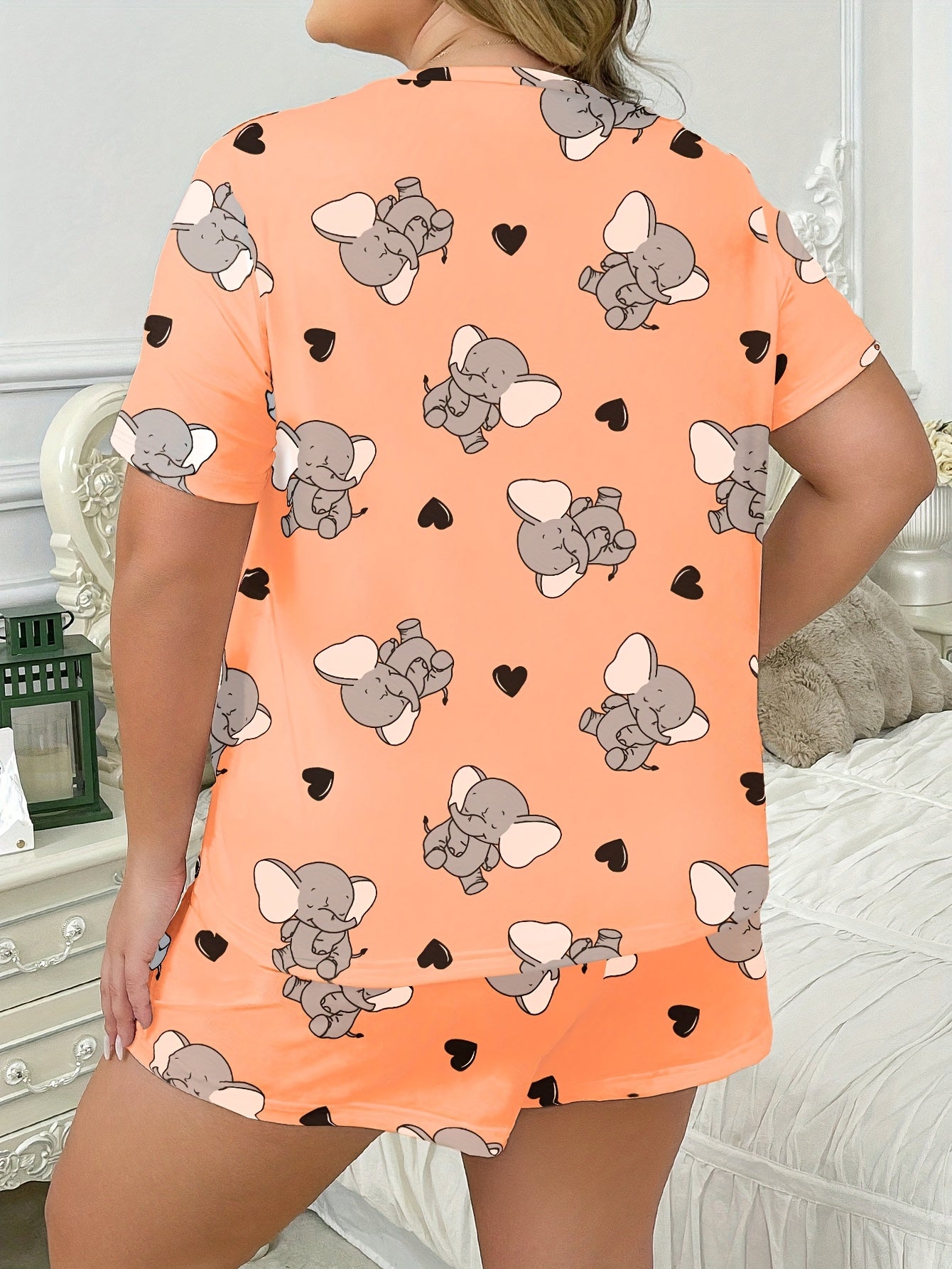 Women's Summer Pajama Set Large Size Short Sleeve Shorts Cartoon Print