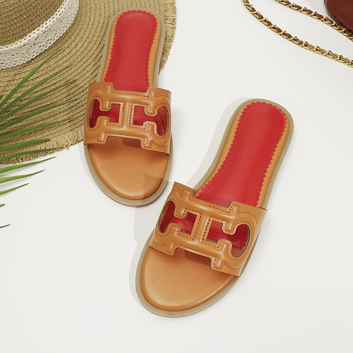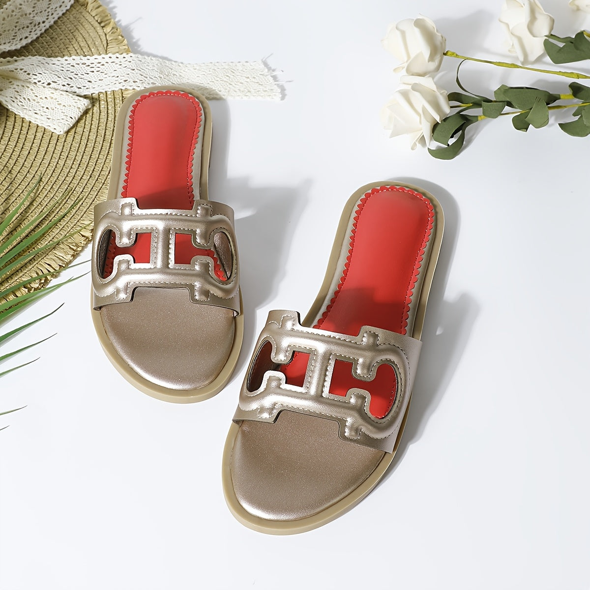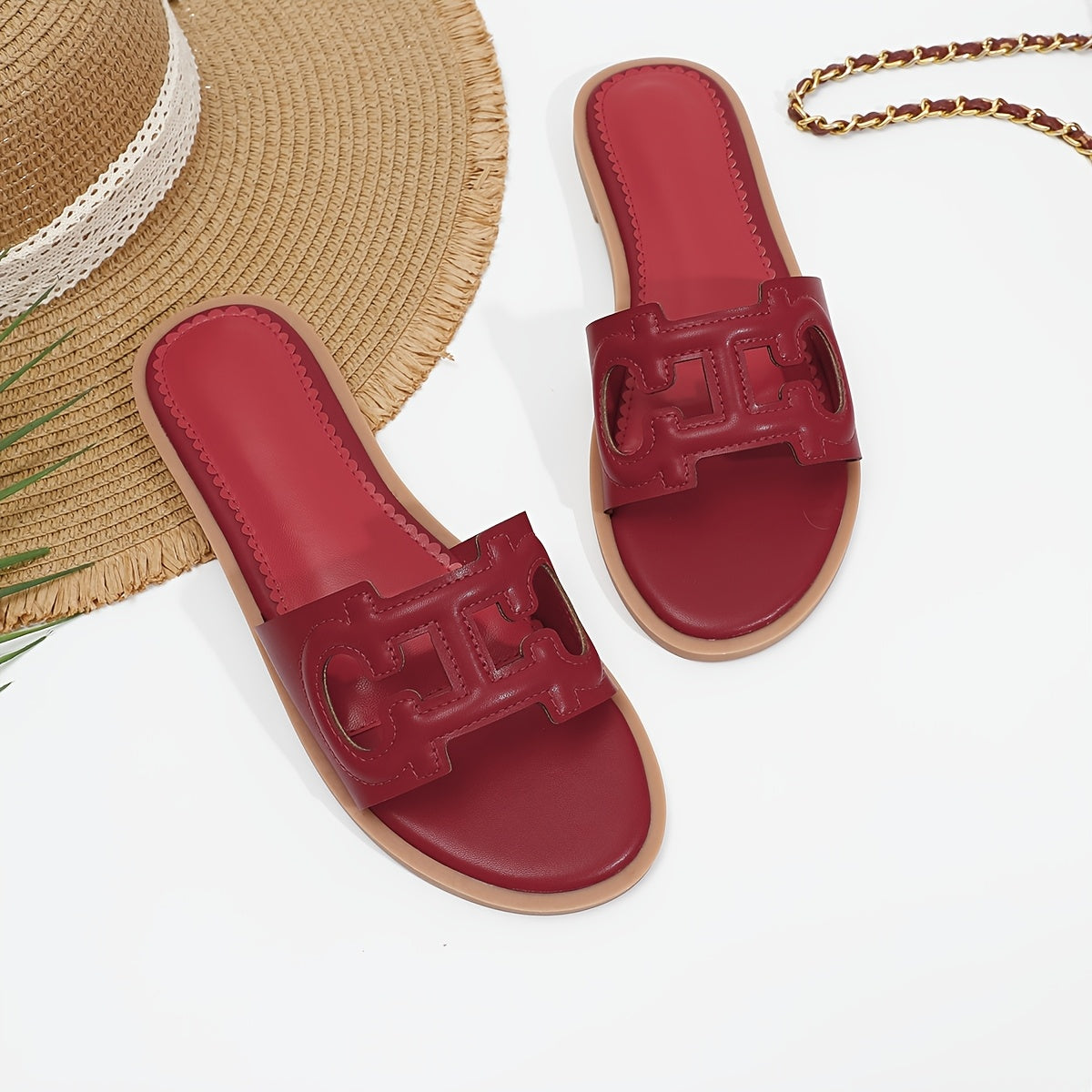 Women's Summer Slip-On Slippers Black PU Open-Toe Flat Casual