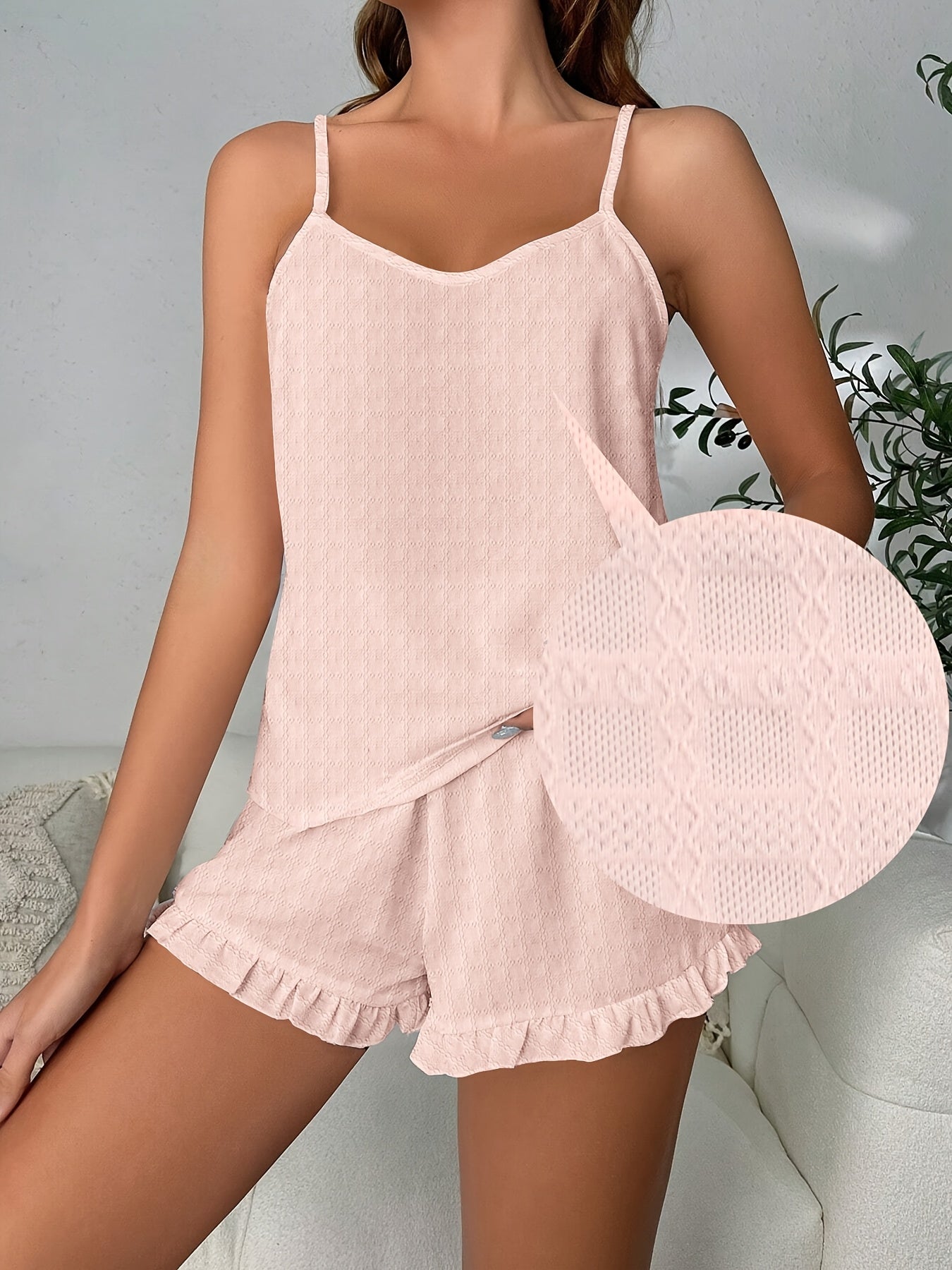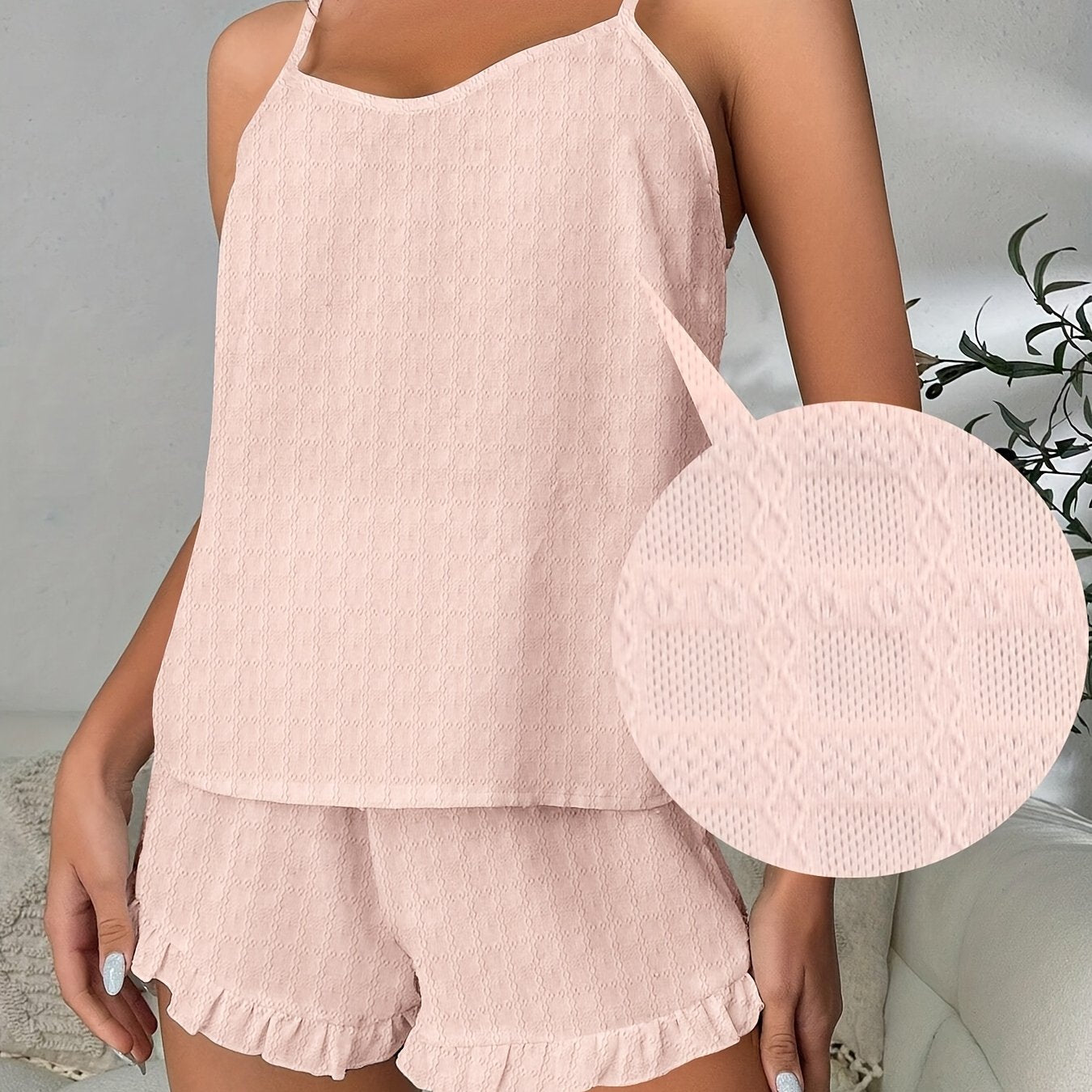 Women's Tartan Pajama Set Sleeveless Top Ruffled Shorts All-Season Polyester Knit