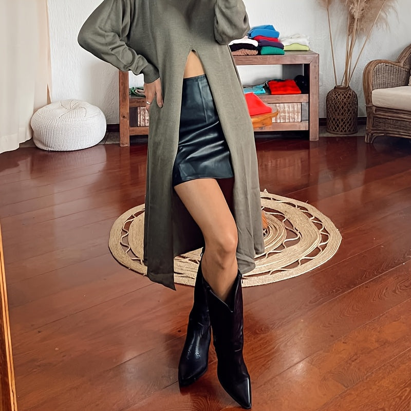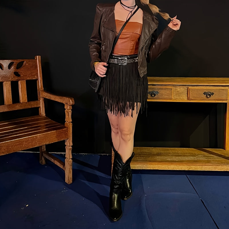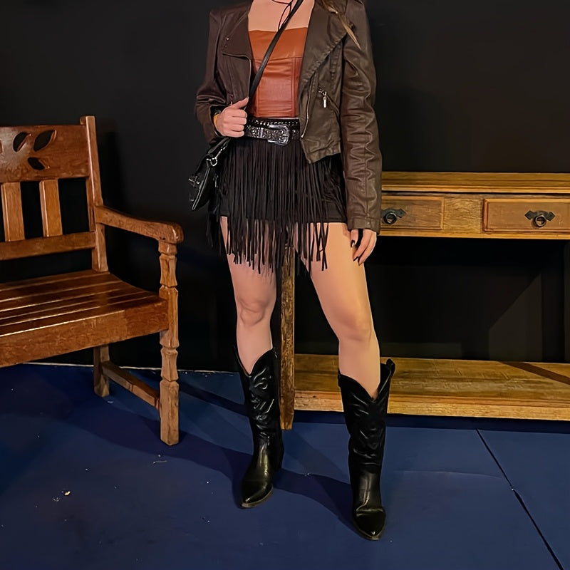 Women's Western Cowboy Boots Mid-Calf Embellished Black Synthetic Leather