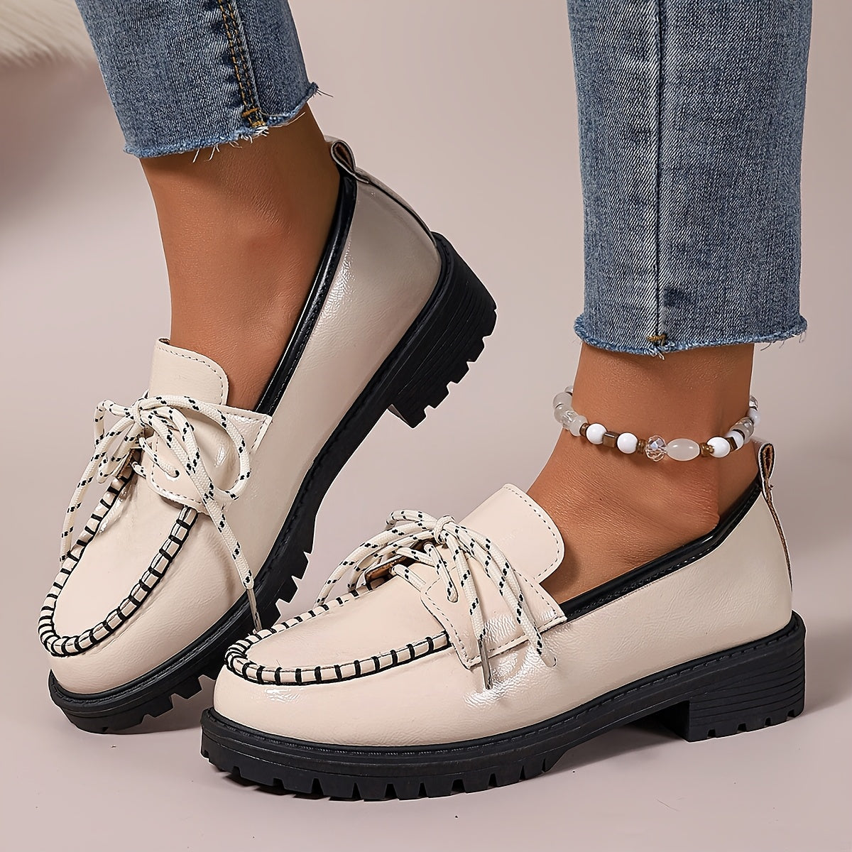 Women's White Loafers with Black Accents Casual Slip-On Platform Shoes