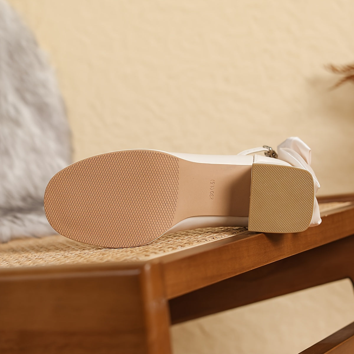 Women’s White Retro Mary Jane Pumps with Block Heel and Bow Detail
