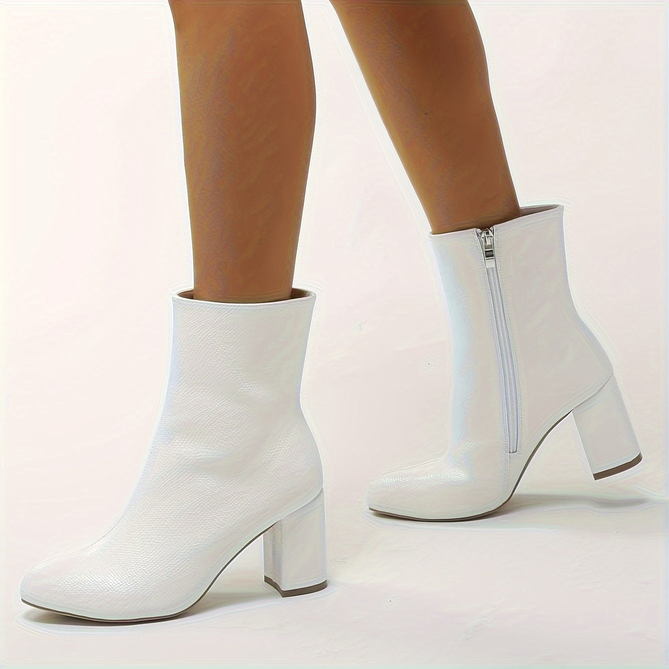 Women's Winter Boots Leather Chunky Heel Side Zipper Plush Lining