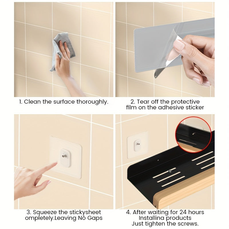 Wood and Metal Wall-Mounted Spice Rack with Hooks for Kitchen Storage