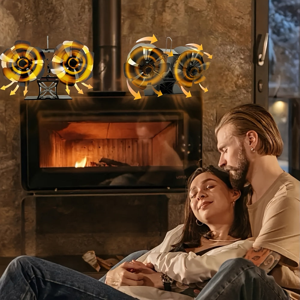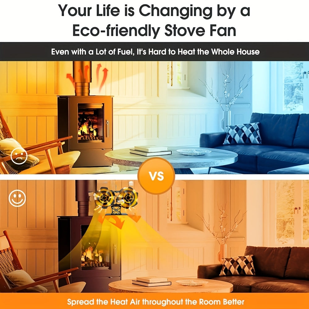 Wood Stove Fan Set with Thermometer and Gloves, Heat Powered, Silent Motor