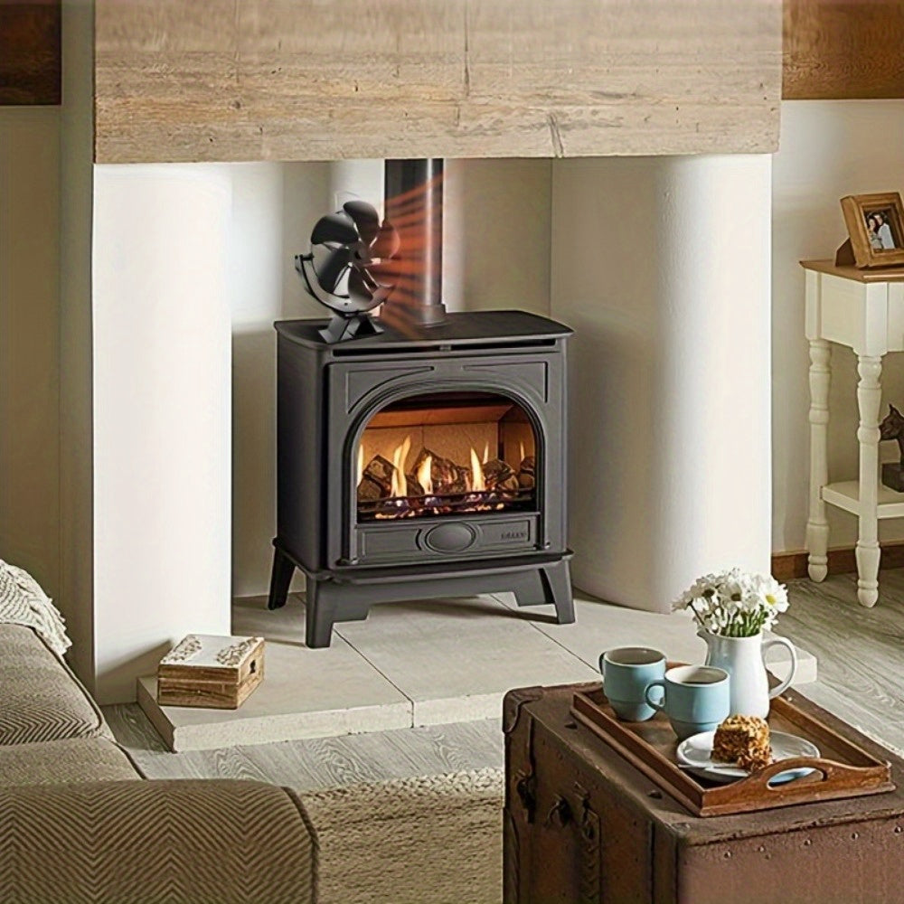 Wood Stove Fan 6-Blade Aluminum Portable Heat Exhauster No Electricity