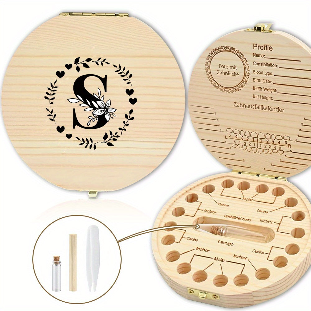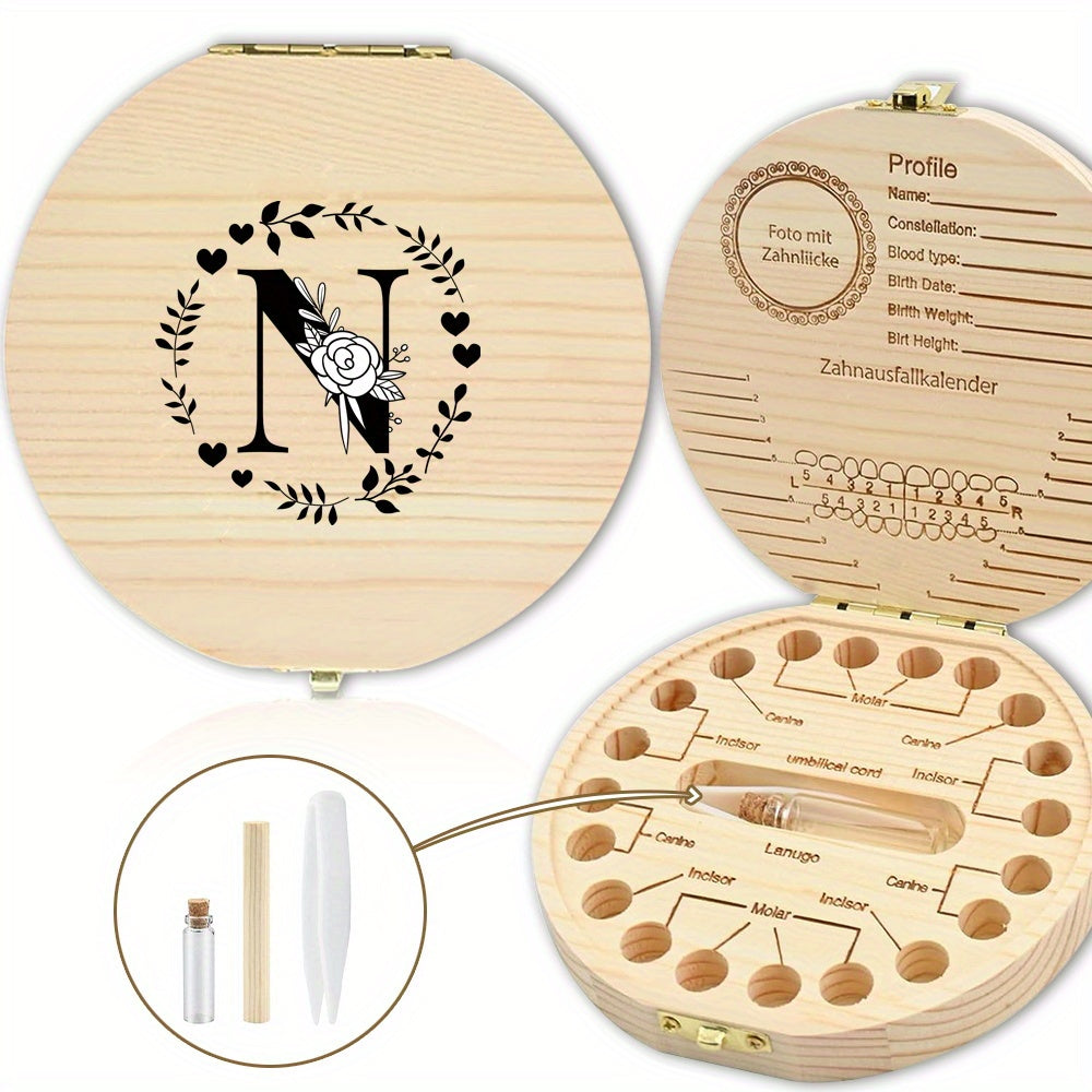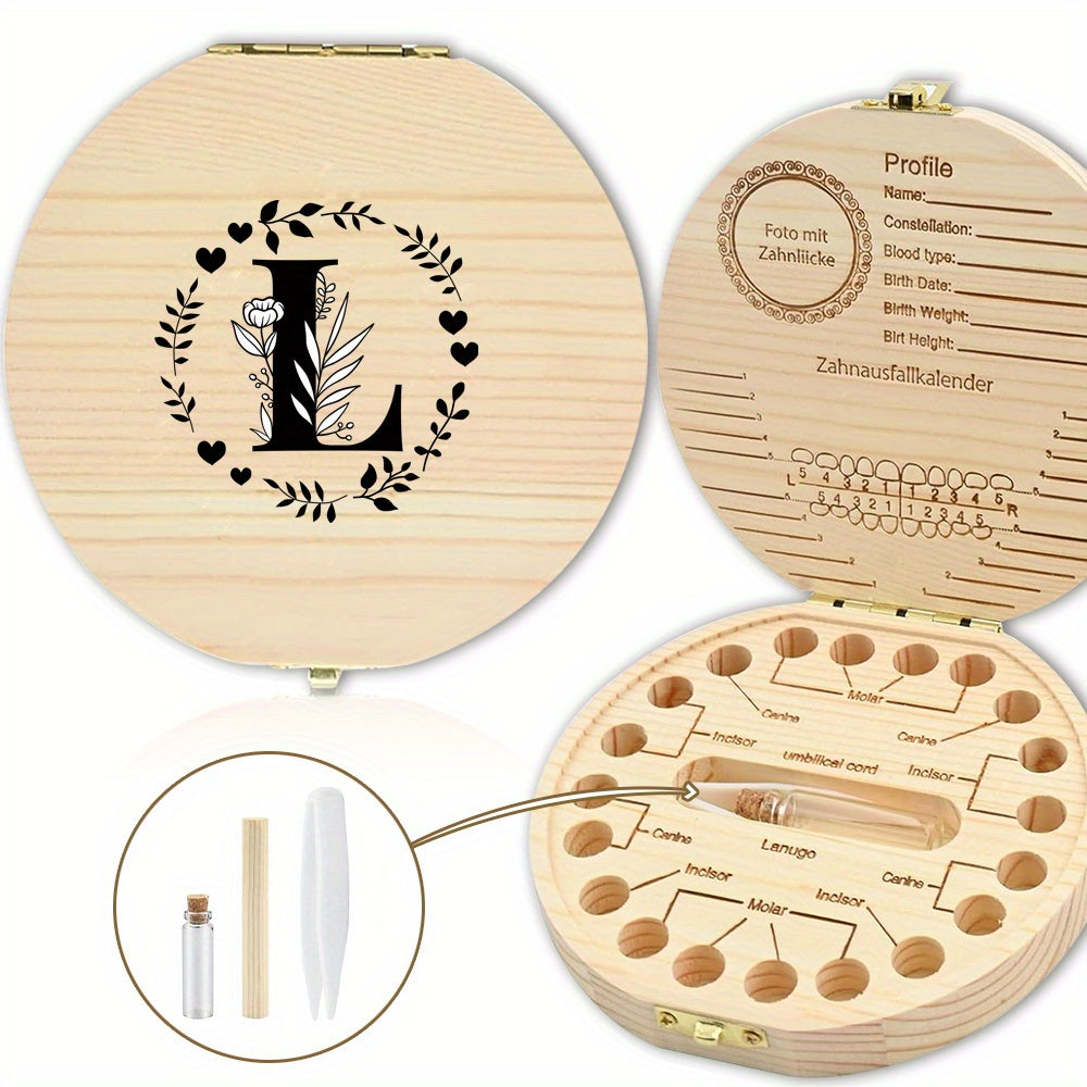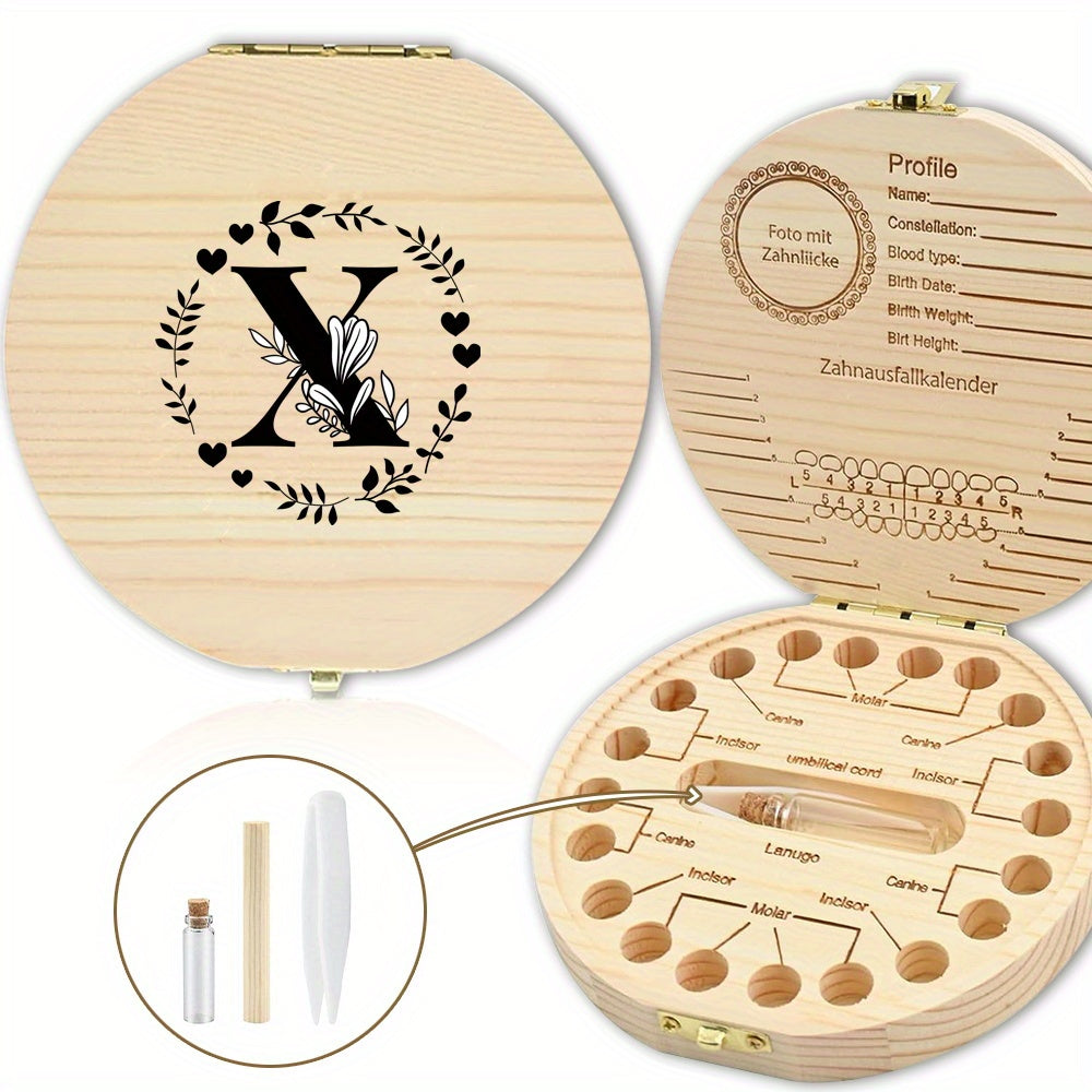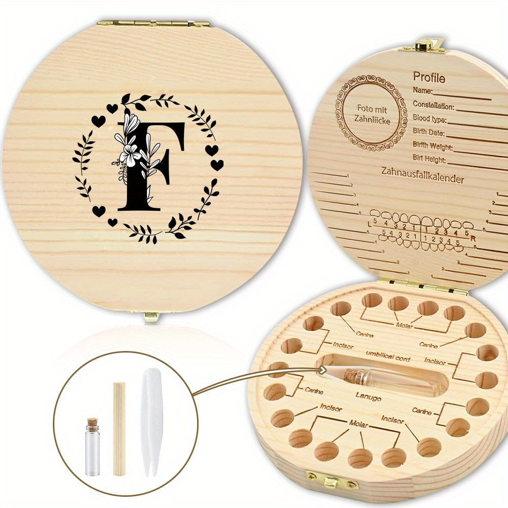 Wooden Keepsake Box with Garland Letter Print Cork Lined for Lost Tooth Storage