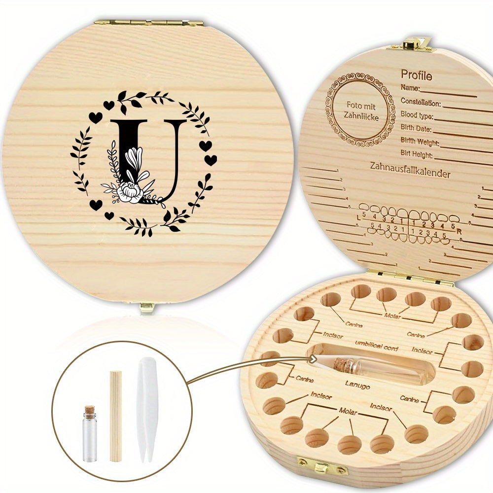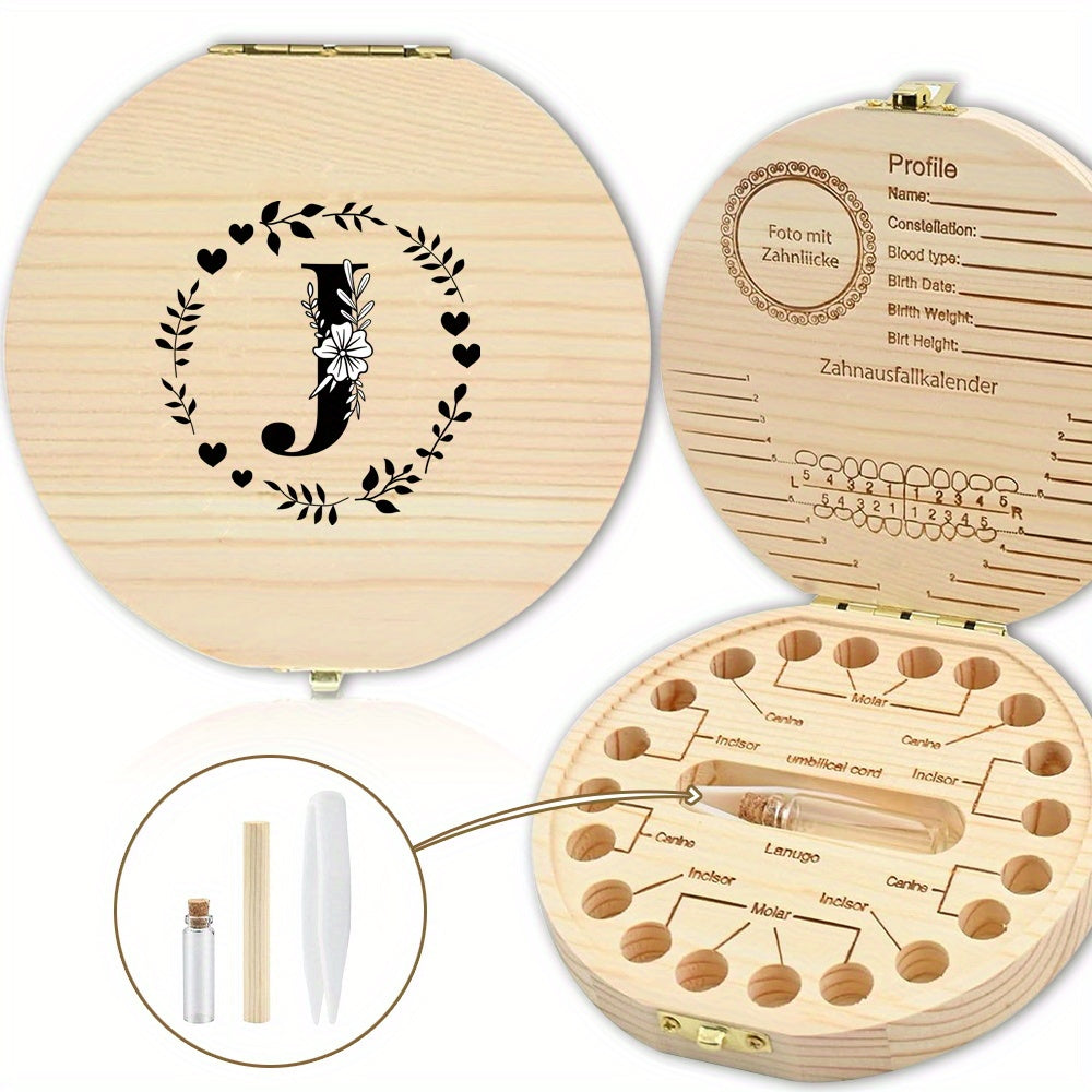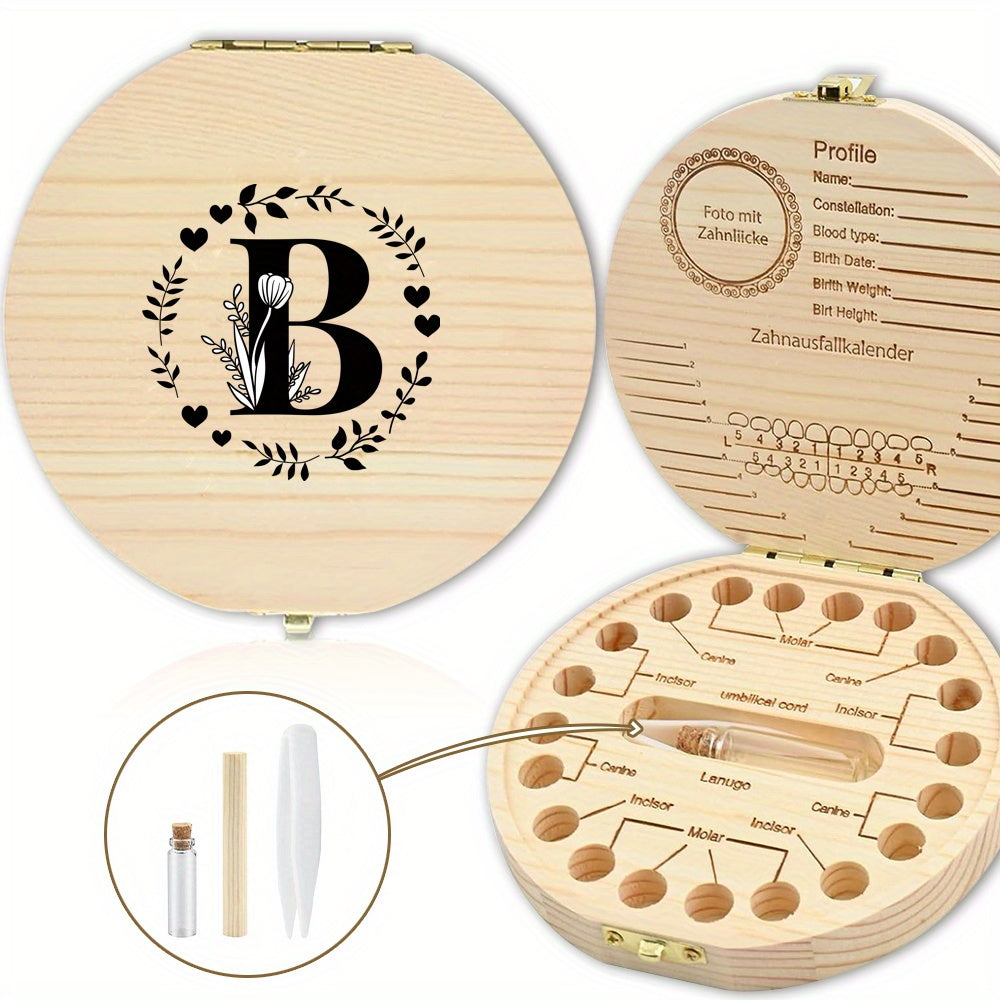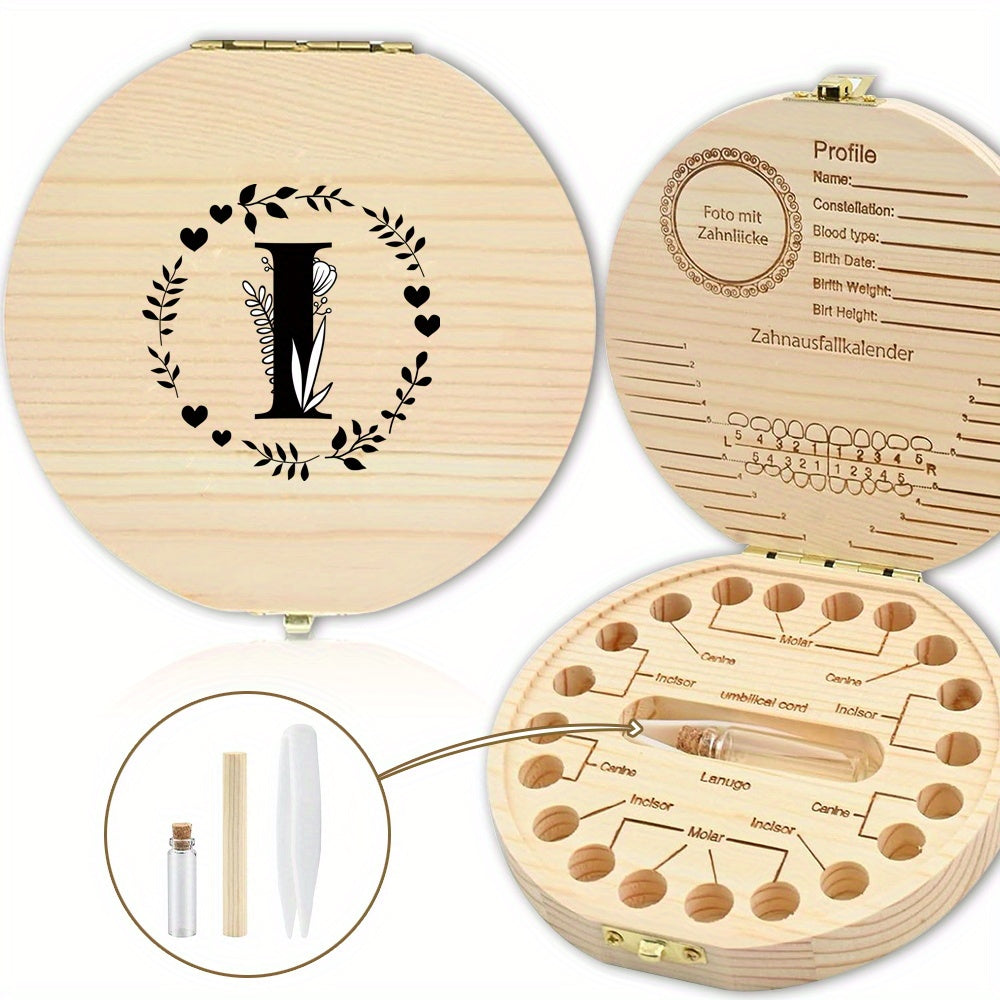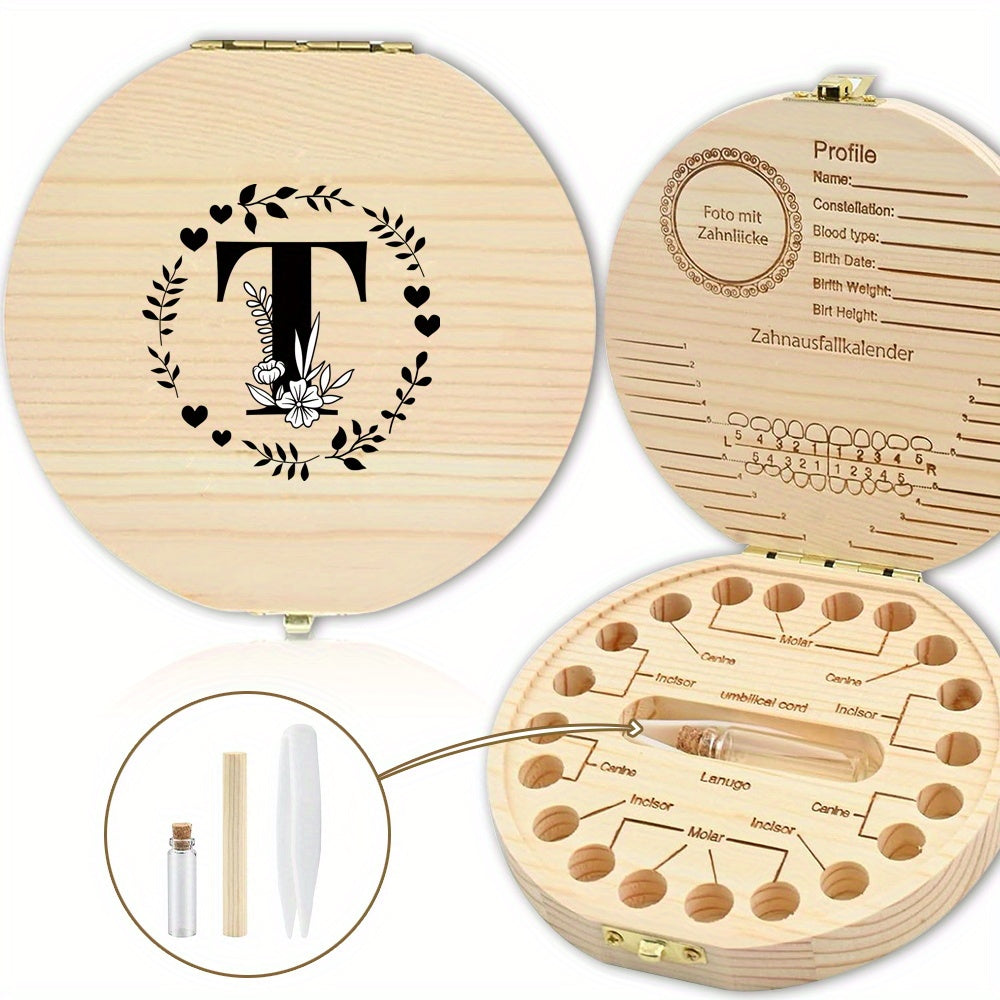 Wooden Keepsake Box with Garland Letter Print Cork Lined for Lost Tooth Storage