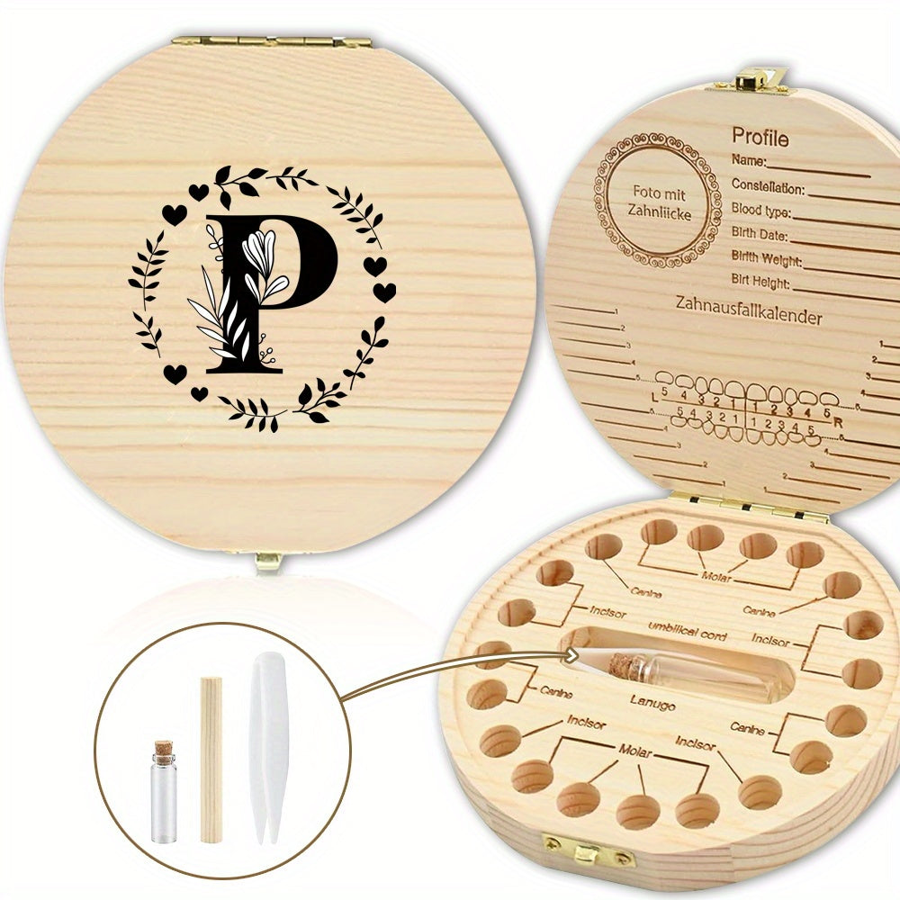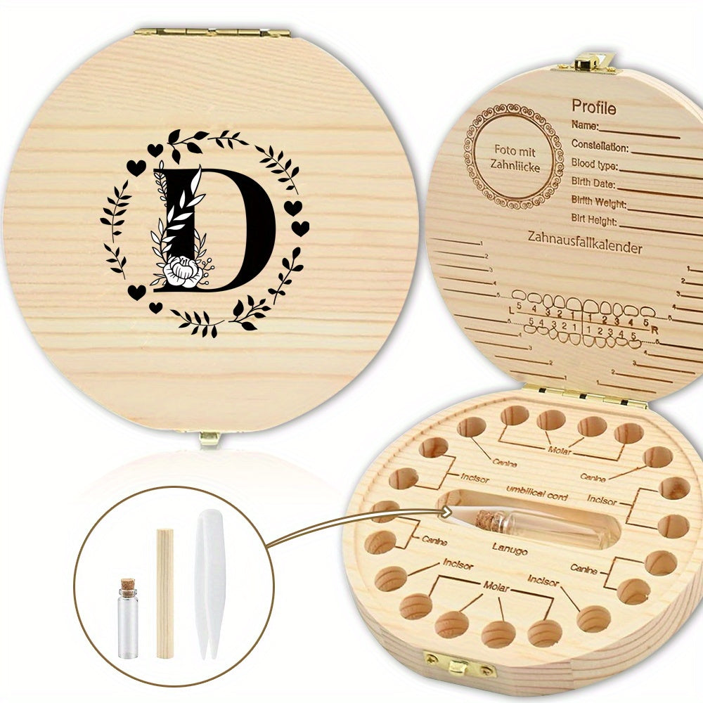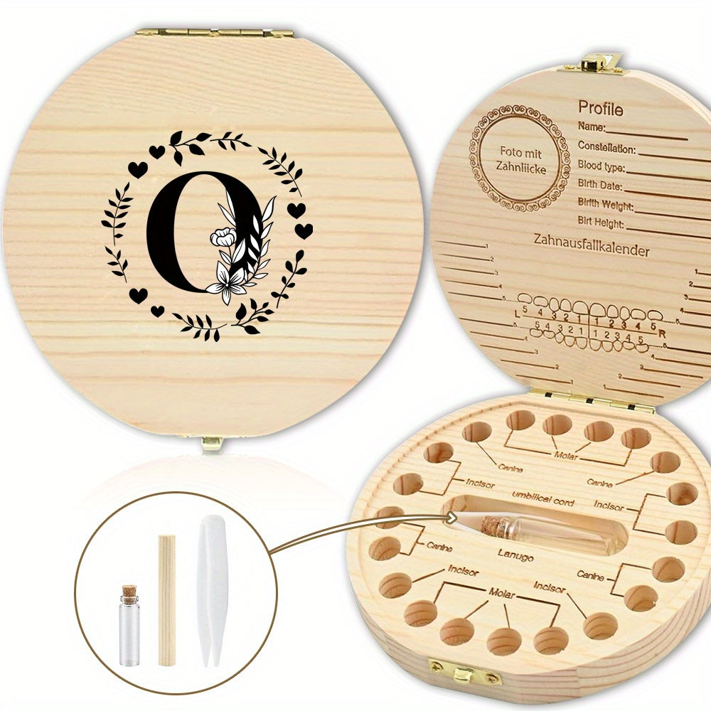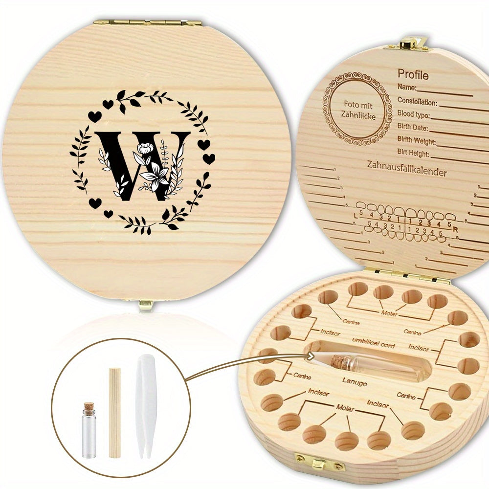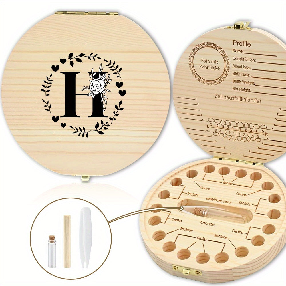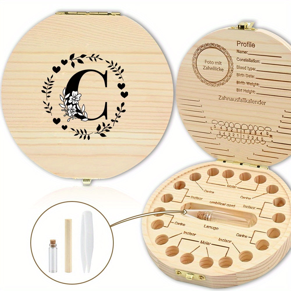 Wooden Keepsake Box with Garland Letter Print Cork Lined for Lost Tooth Storage