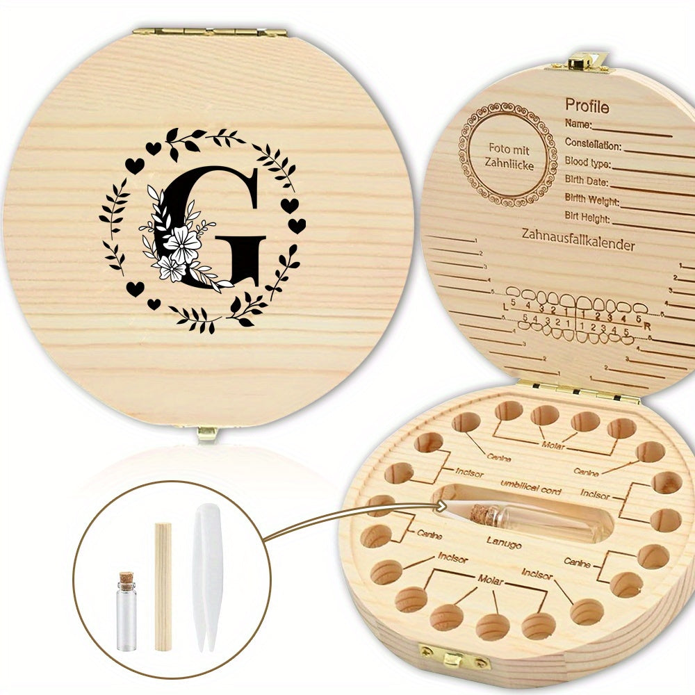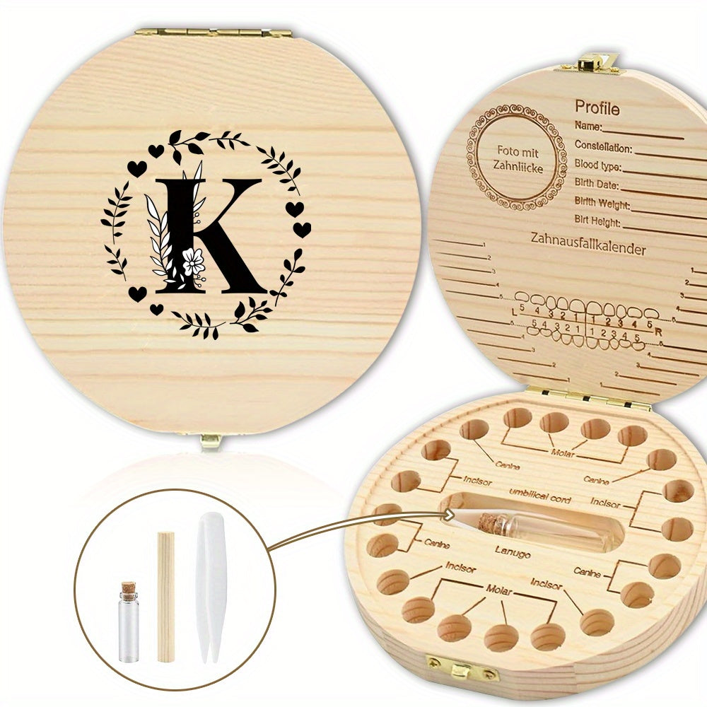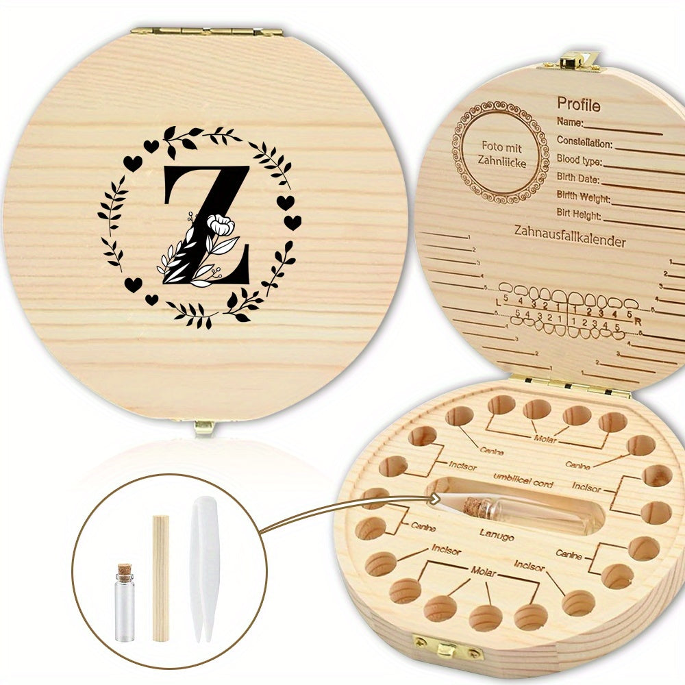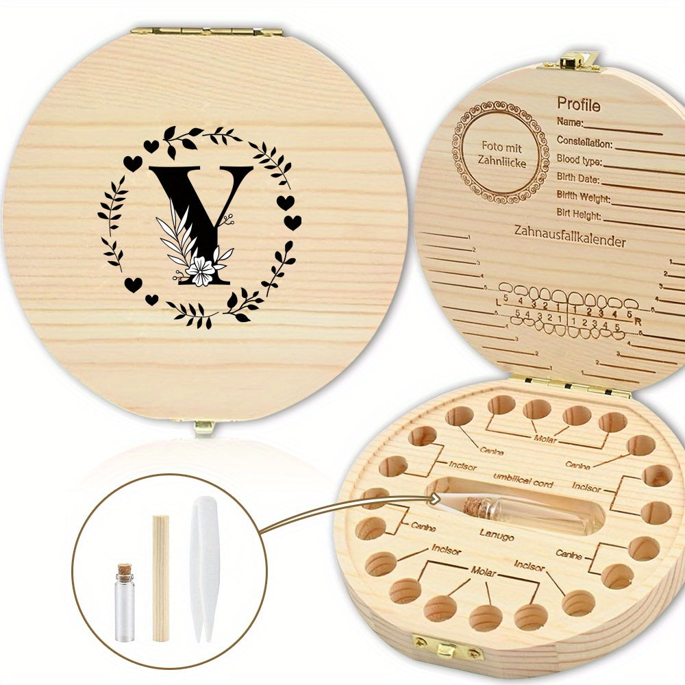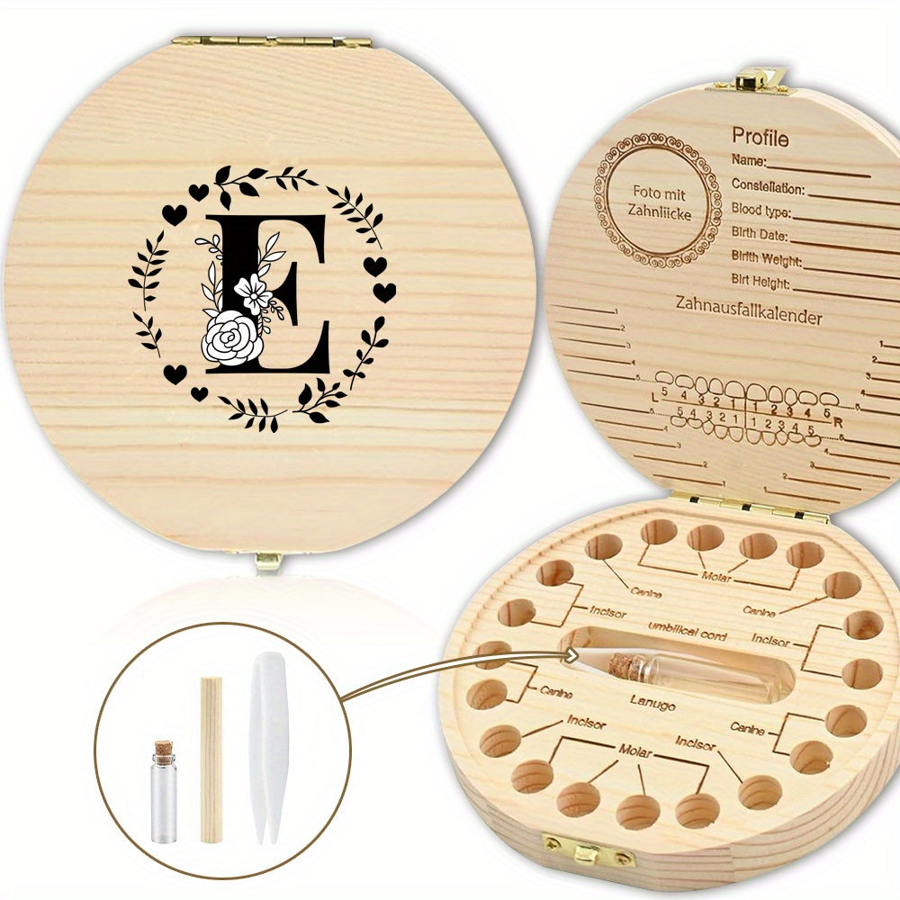 Wooden Keepsake Box with Garland Letter Print Cork Lined for Lost Tooth Storage