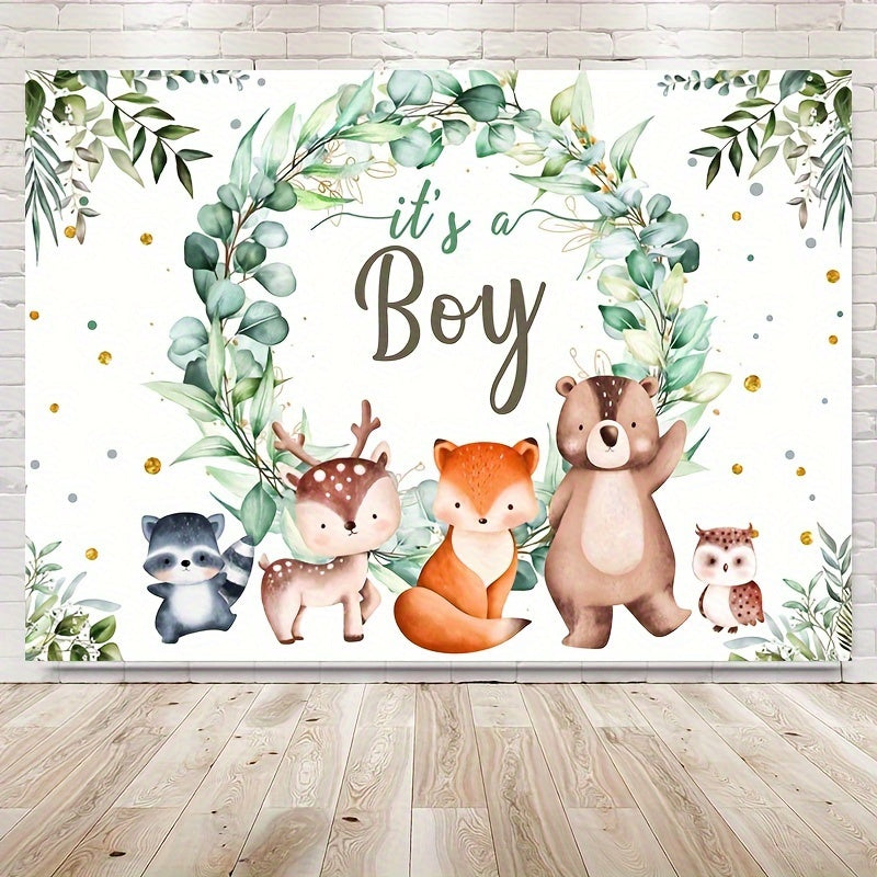 Baby Shower Background for Boy with Green Garland Fox and Wild Animals