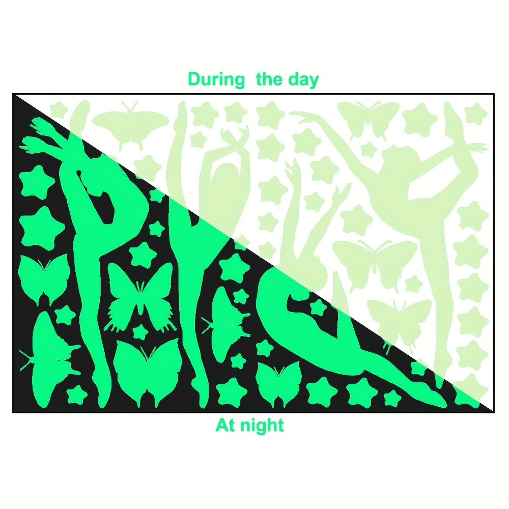 Illuminated Ballet Dancer and Butterfly Wall Decals for Teens and Adults Glossy Finish Stick-On PET Stickers