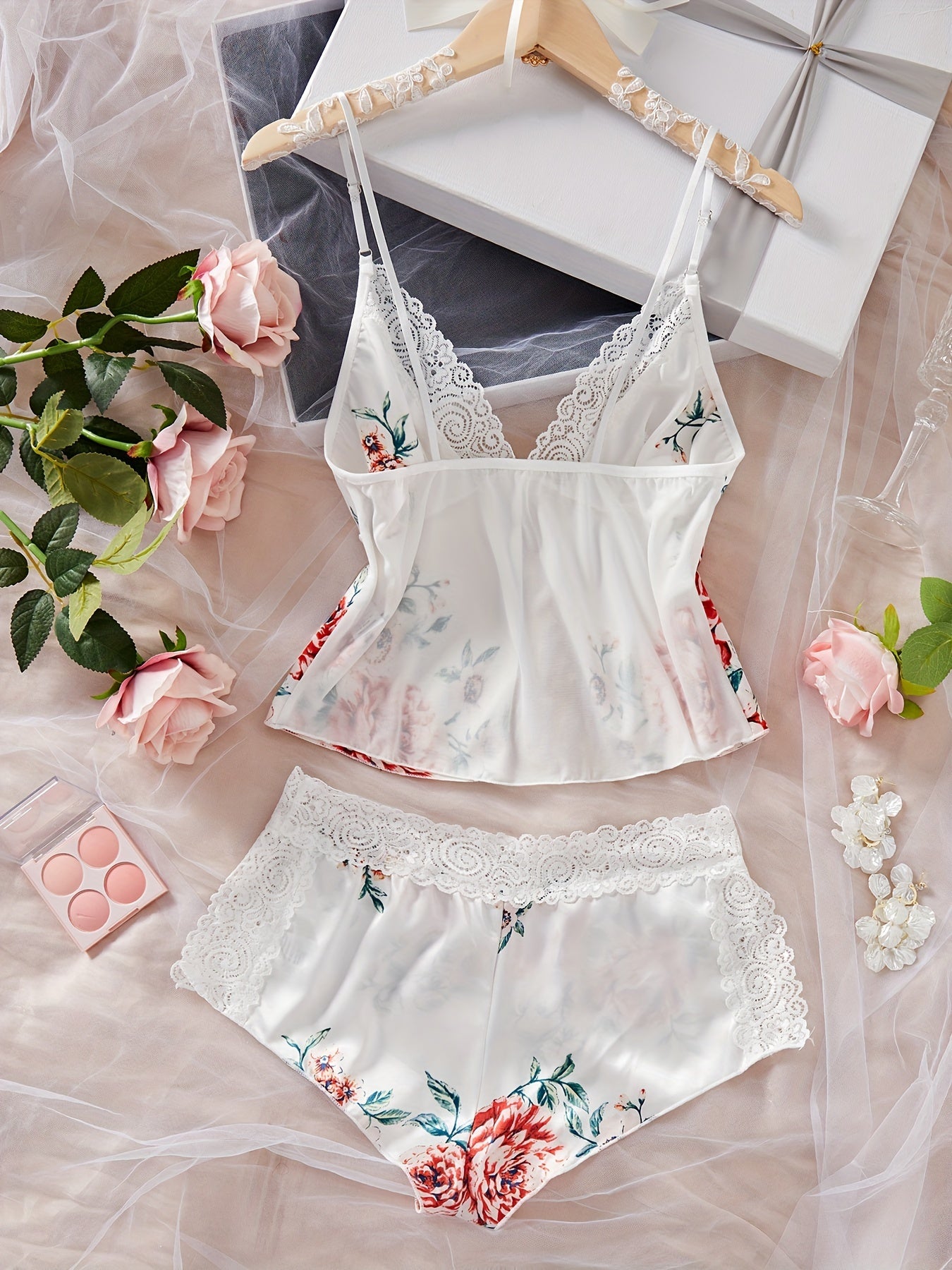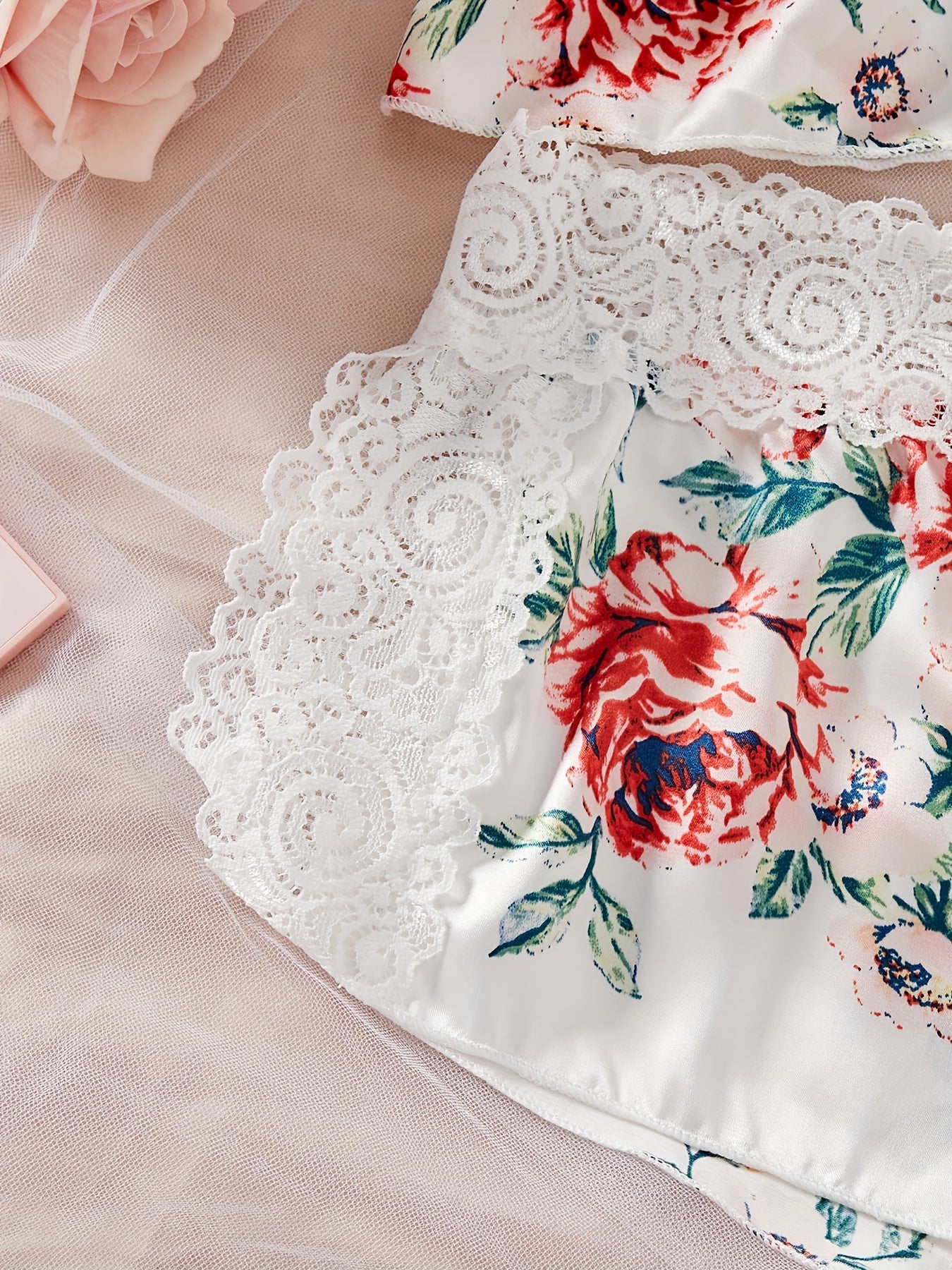 Lace Lingerie Set for Women, Adjustable Straps, Pink, Size S