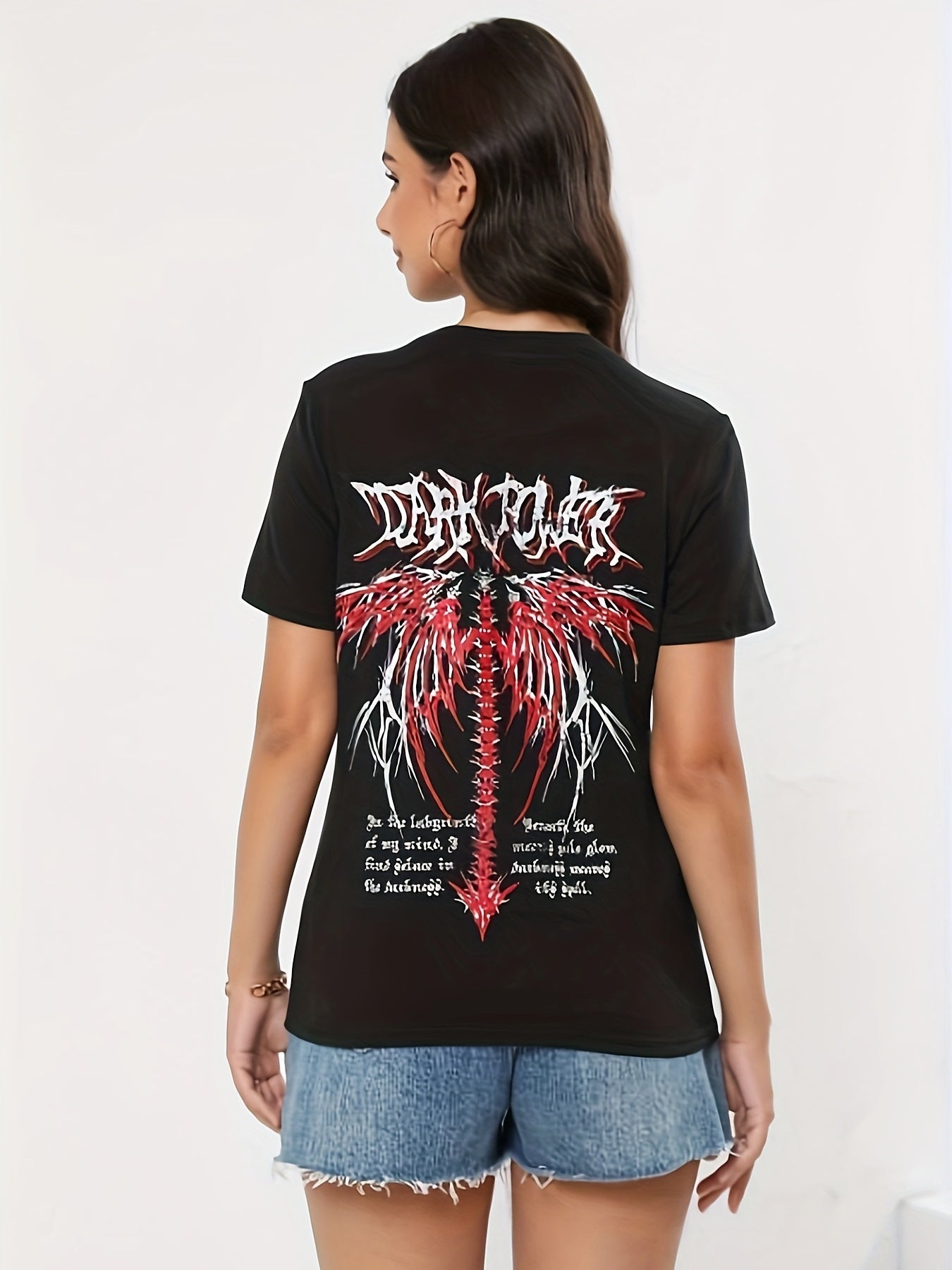 Women's Y2K Letter Print Crew Neck Short Sleeve T-Shirt for Spring Summer