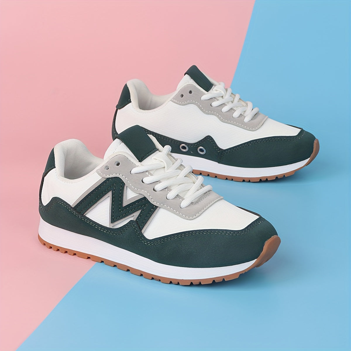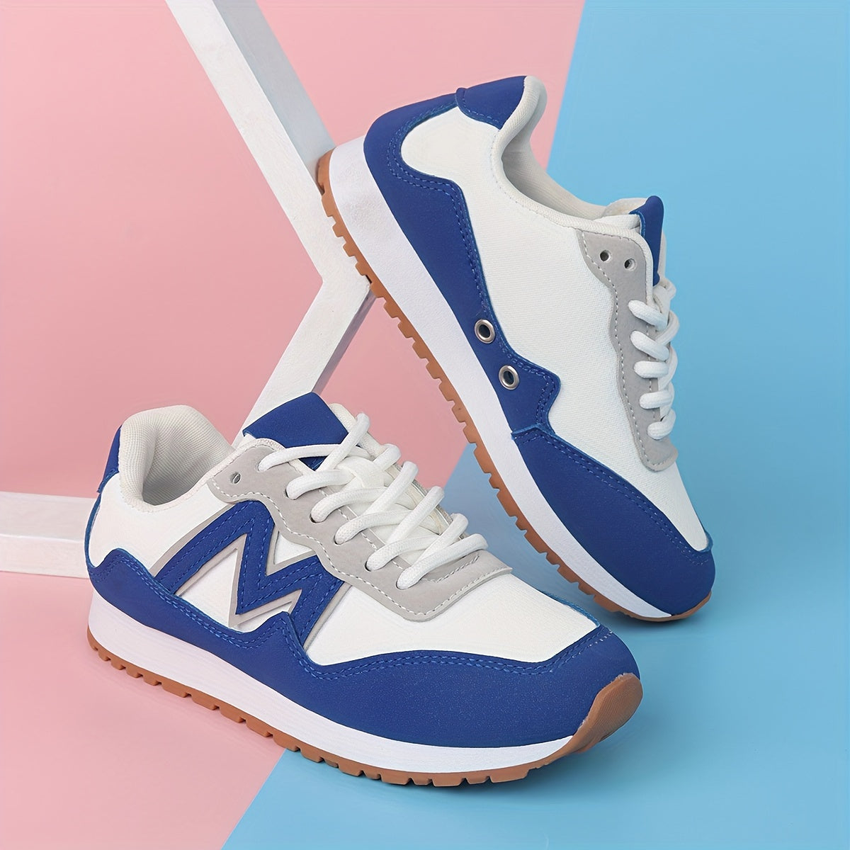 Kids Boys Girls Sneakers Low Top Lace-up Sports Shoes Blue Green Silver PU Lightweight Comfortable