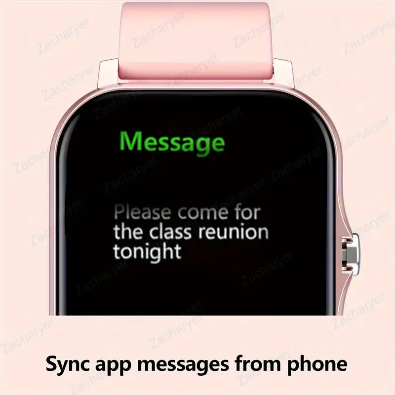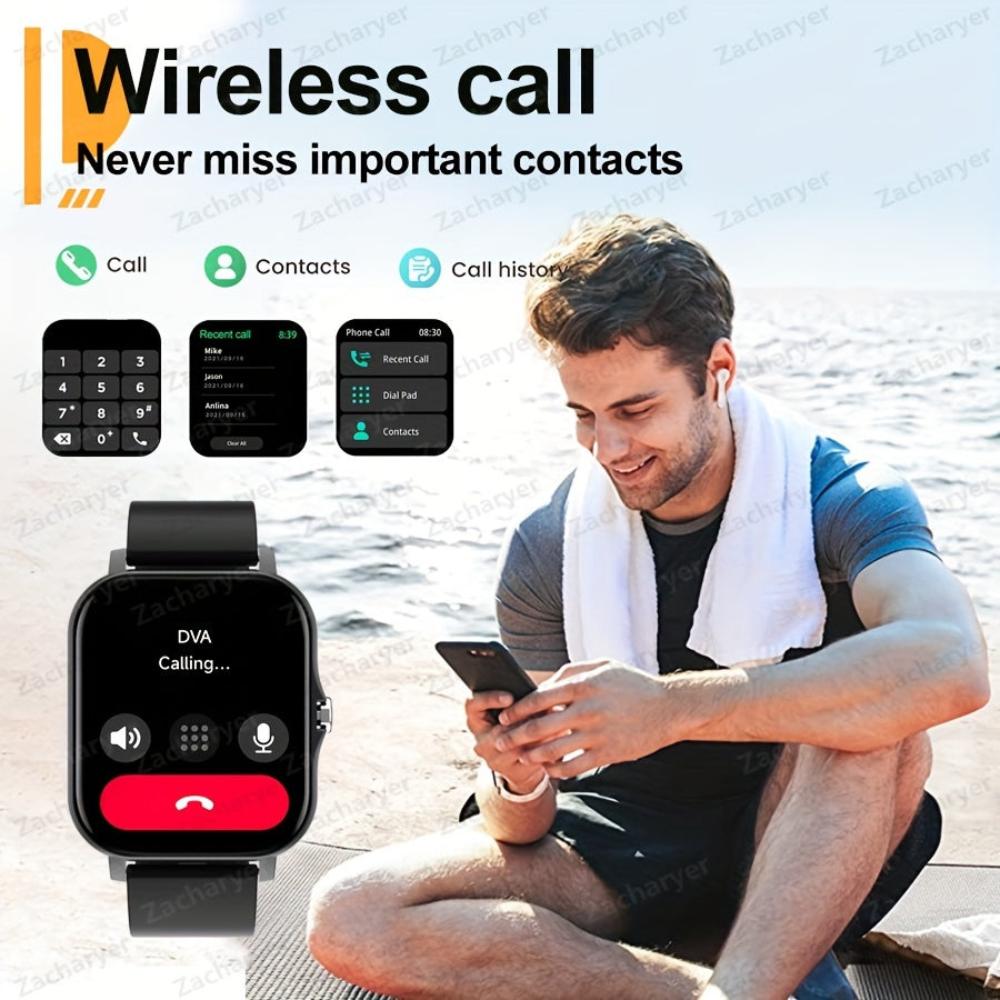 Full-Screen Touch Smartwatch with Call Alerts Sports Modes Compatible with Android and iPhone Square Silicone Band