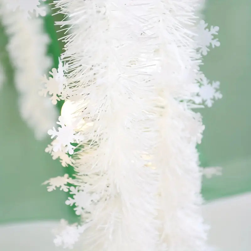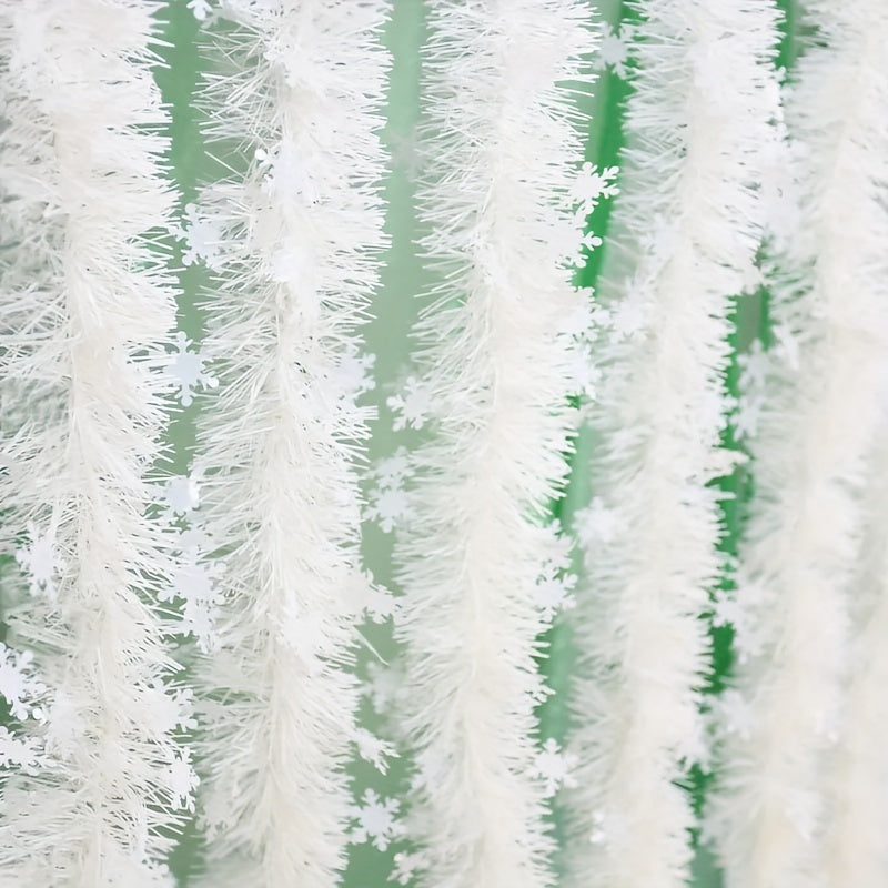 Conjunto de decoración de copo de nieve navideño con copo de nieve de felpa y tiras de copo de nieve de plástico blanco