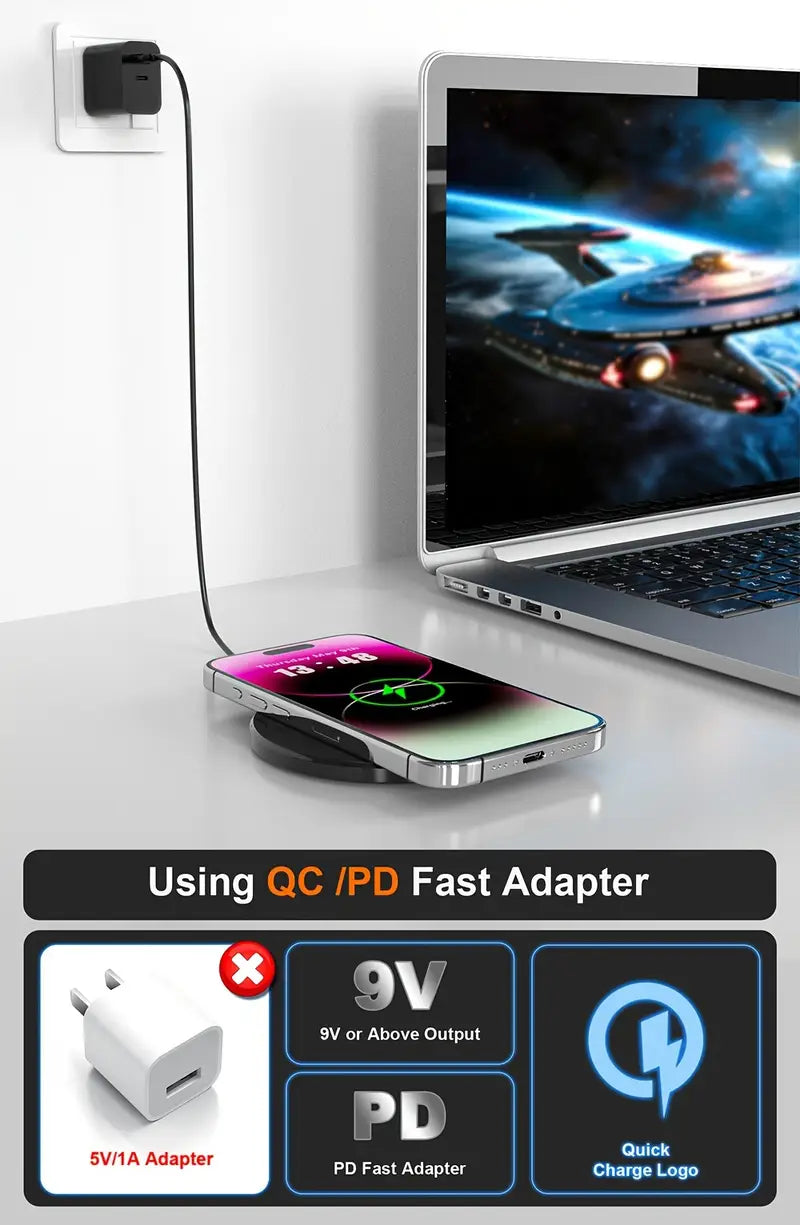 Cargador inalámbrico rápido de 10W alimentado por USB con indicador de carga para teléfonos
