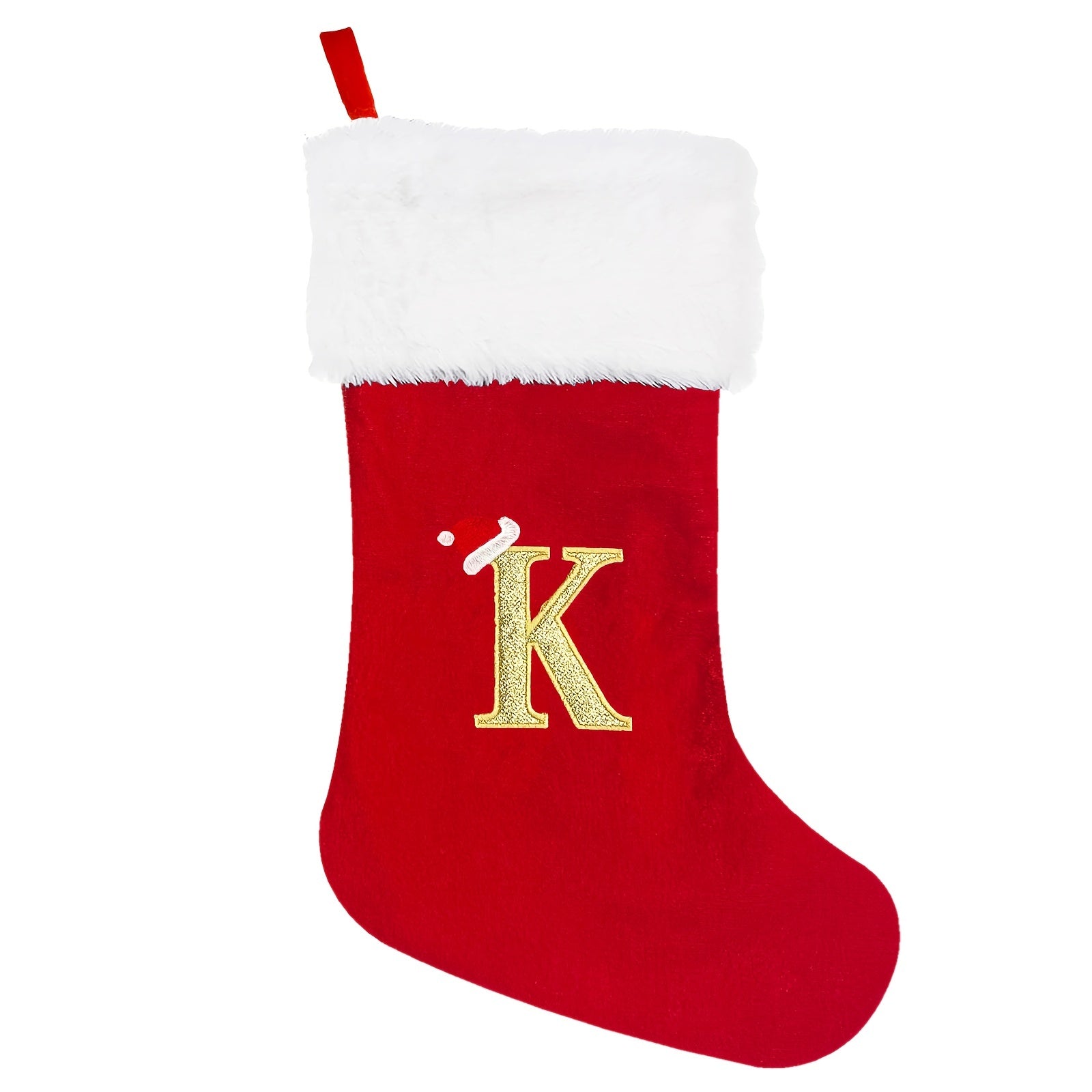 Calcetín de Navidad de terciopelo rojo con puños de felpa blanca y inicial bordada 53.34 cm