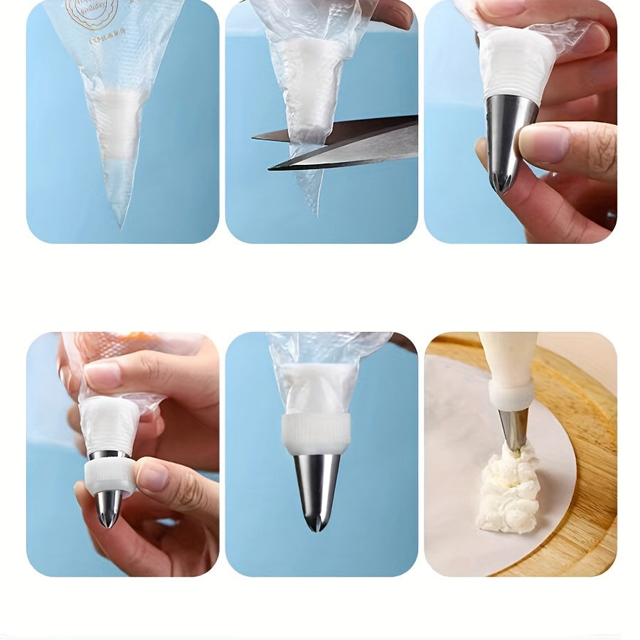 100 bolsas de plástico desechables para pastelería con boquillas para hornear y decorar pasteles