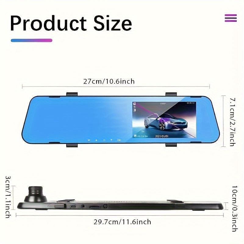 Cámara de tablero para coche en HD 1080P con doble lente, visión nocturna y espejo retrovisor antirreflejos