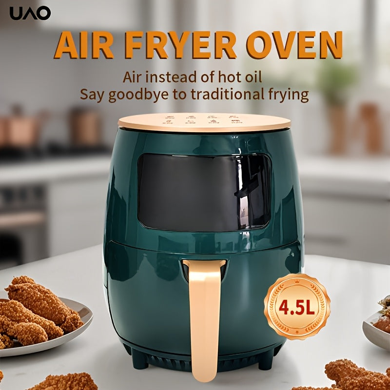 Freidora de aire eléctrica de 4.5L con pantalla LCD, sartén antiadherente, fácil de limpiar y multifuncional