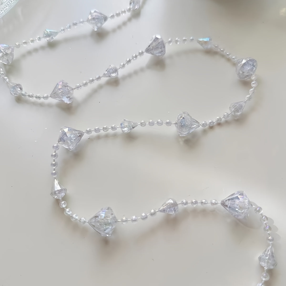 Guirnalda de cuentas de acrílico 3m, cuentas blancas y transparentes, decoración de boda y Navidad, adorno colgante