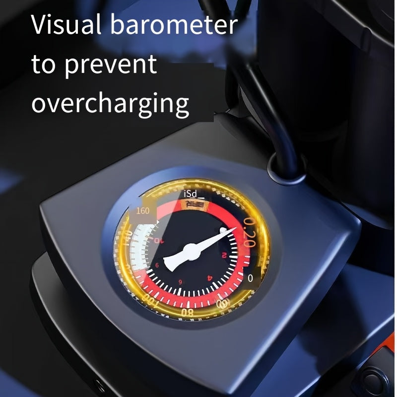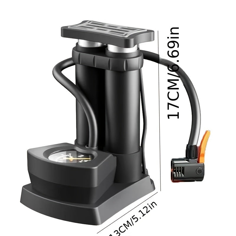 Bomba de aire portátil de alta presión negra con manómetro para coches, bicicletas y motocicletas