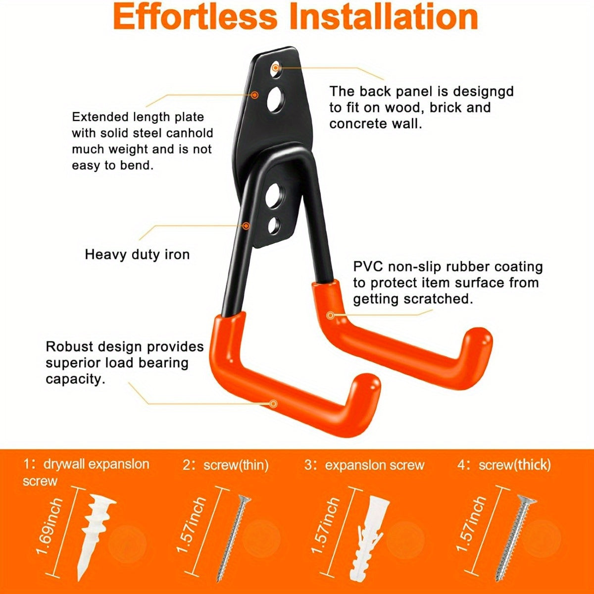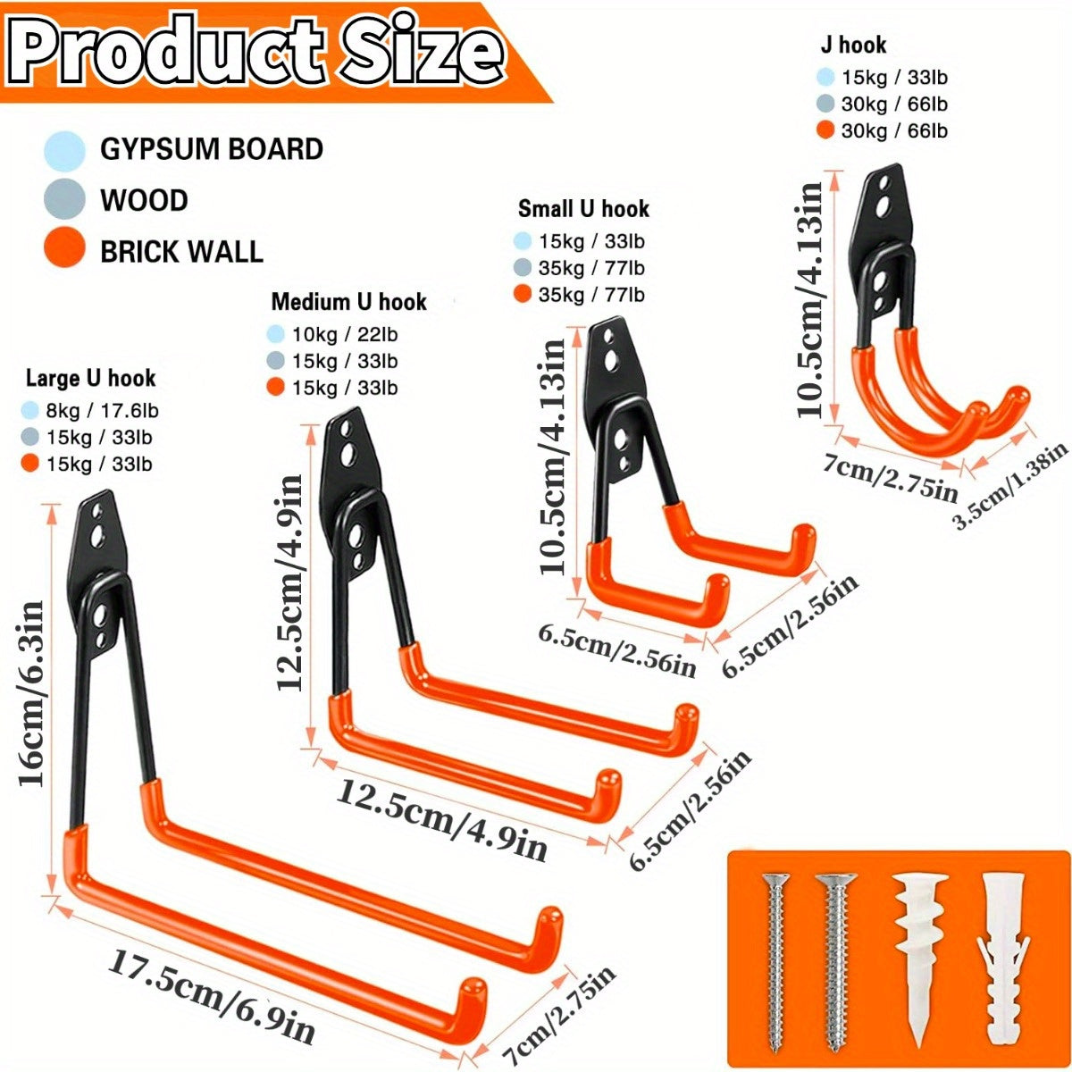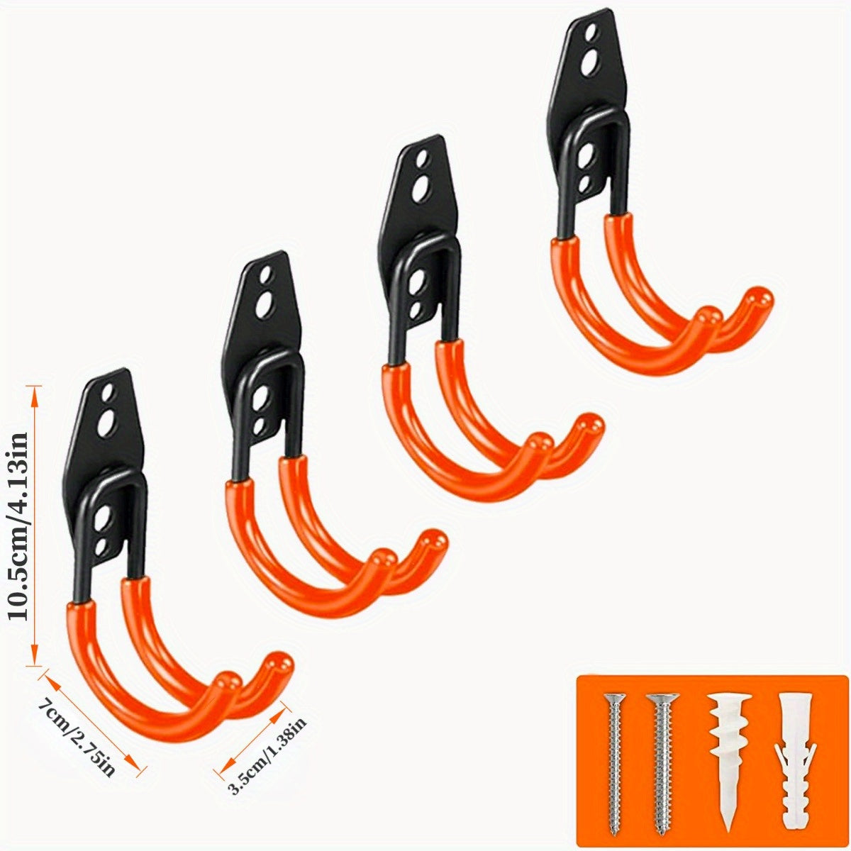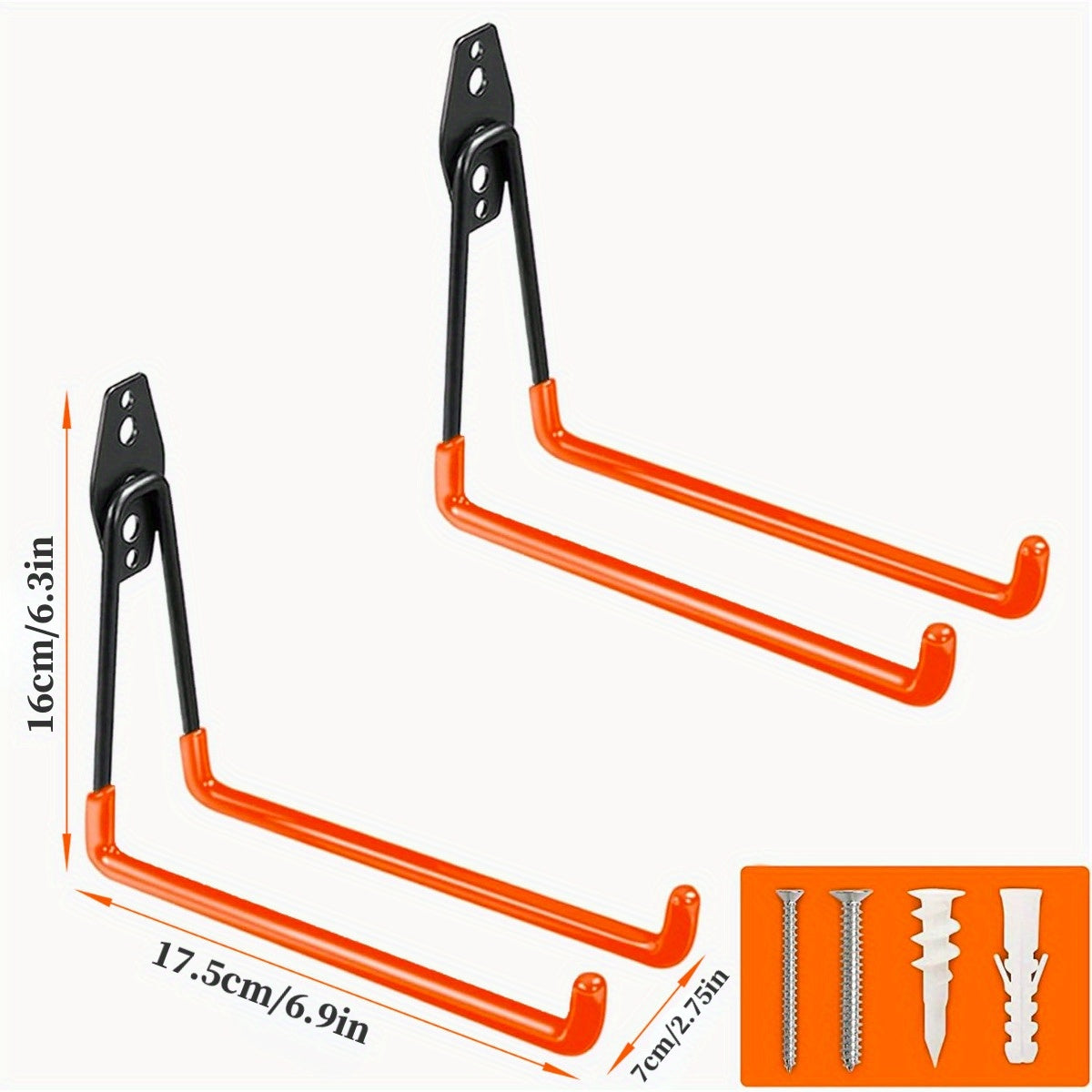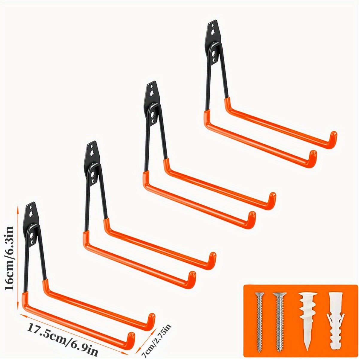 Ganchos de garaje de 3 piezas en color naranja para herramientas eléctricas, escaleras, bicicletas y almacenamiento