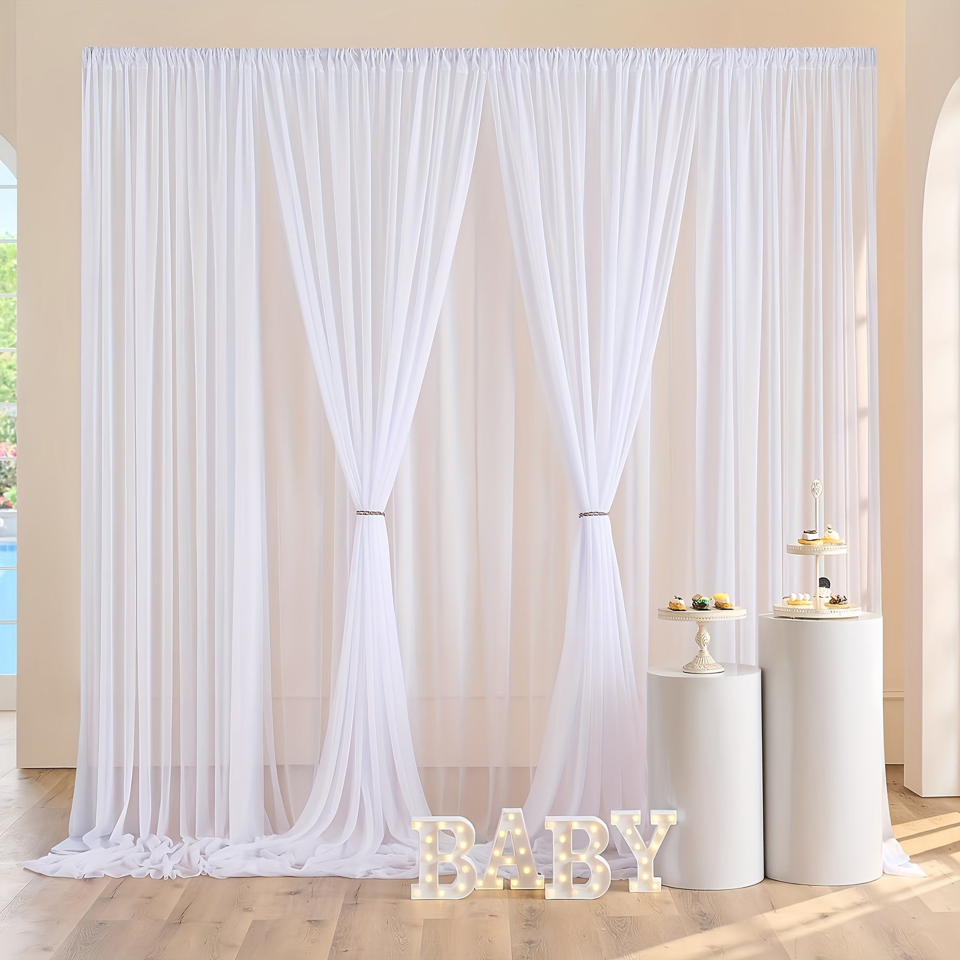 Cortinas de tul blanco para fondos para bodas, baby showers, cabinas de fotos, set de 2