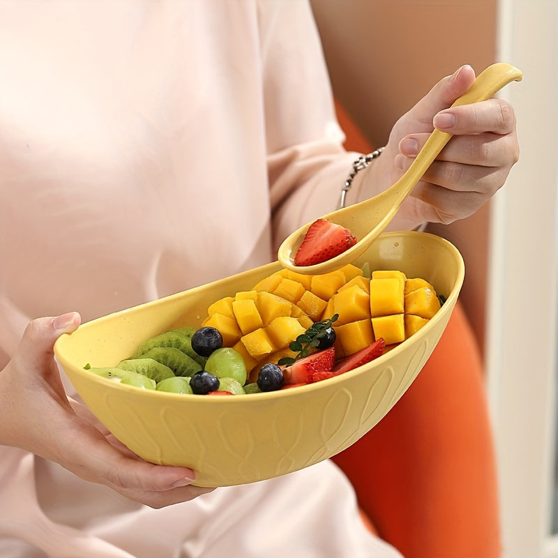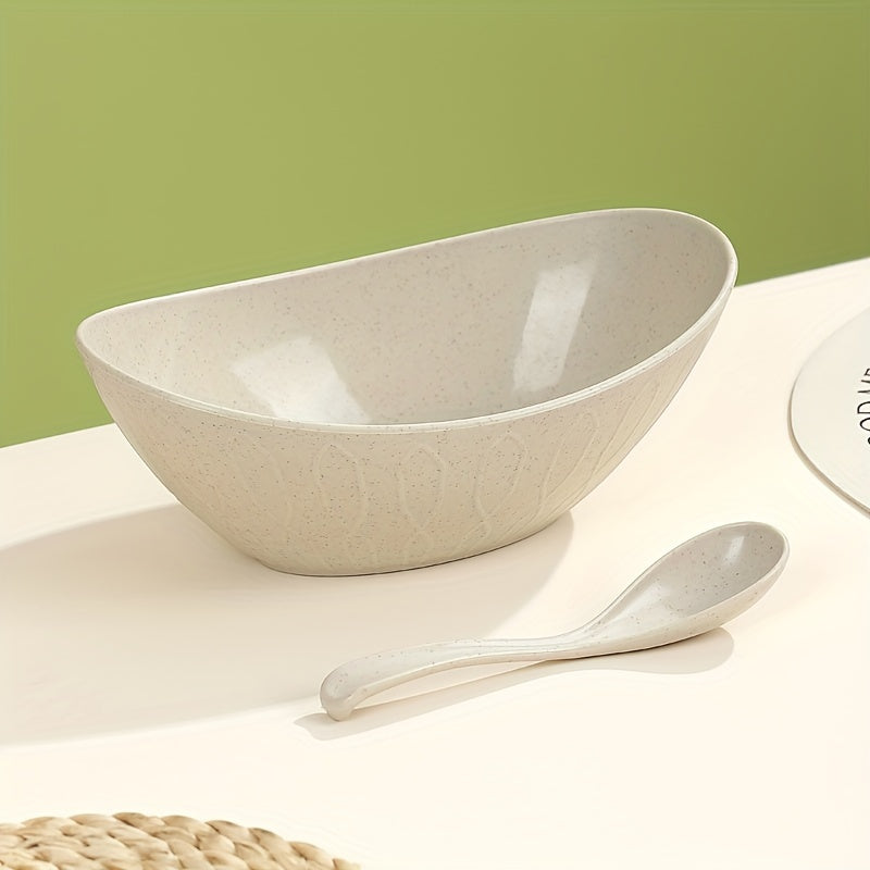 Juego de 2 cuencos de trigo plateados con cuchara, reutilizables, irrompibles, ligeros, utensilios de cocina para ensaladas, postres y pasta