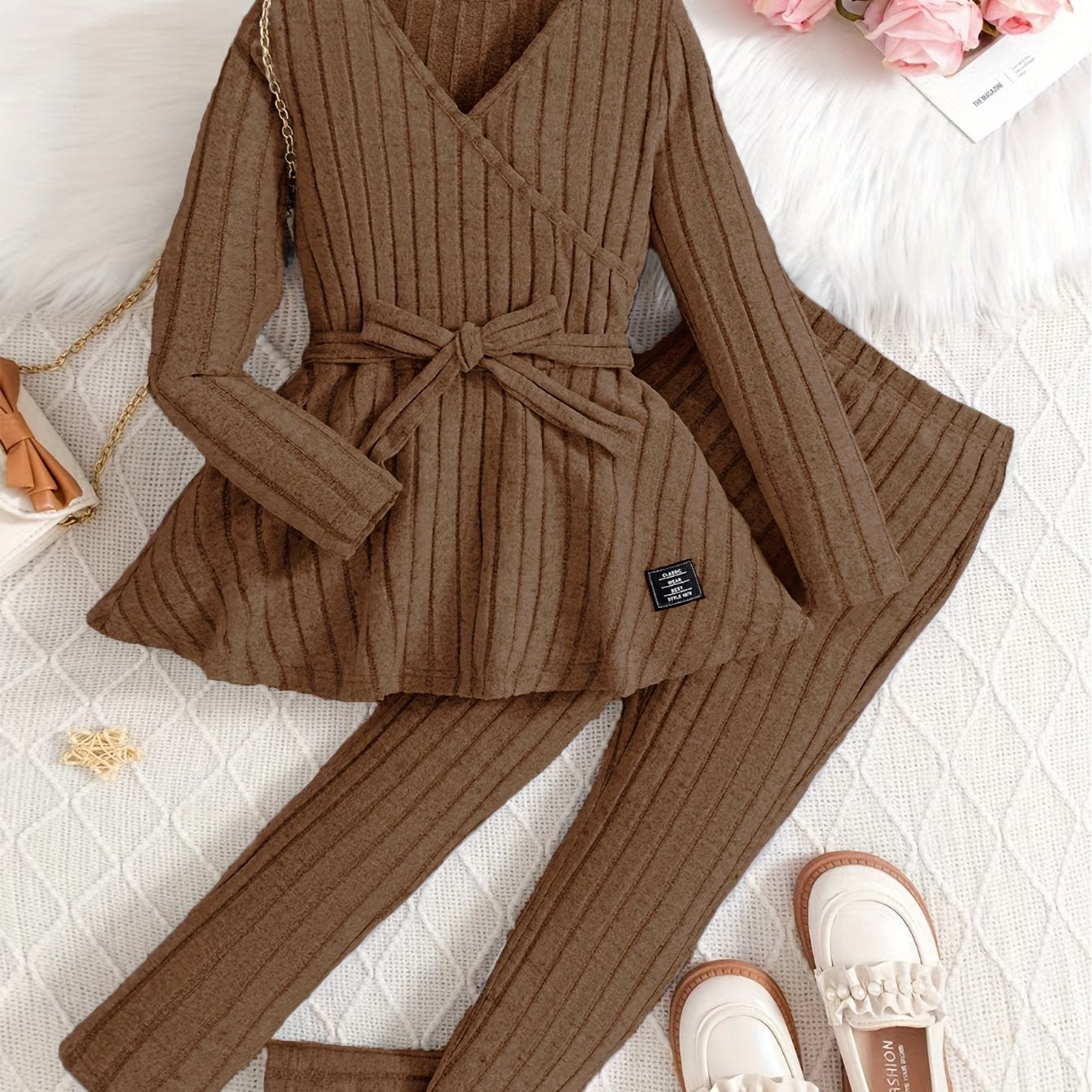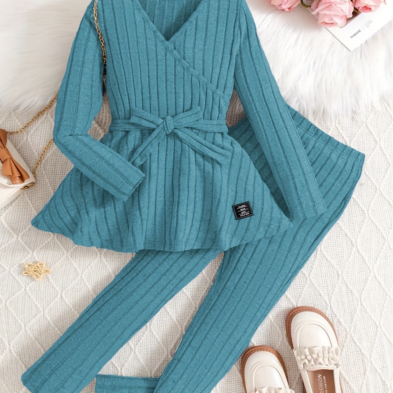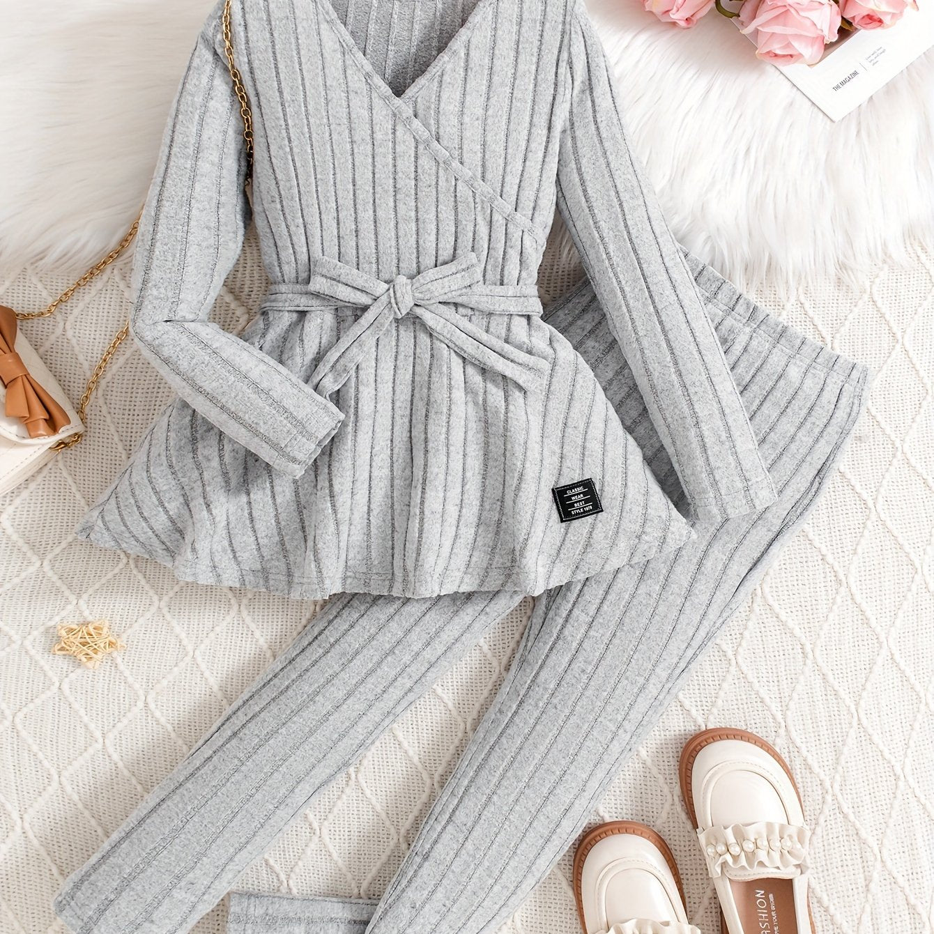 Leggings de rayas de punto de costilla ajustado para niñas primavera verano, con estiramiento medio y amigables con la piel