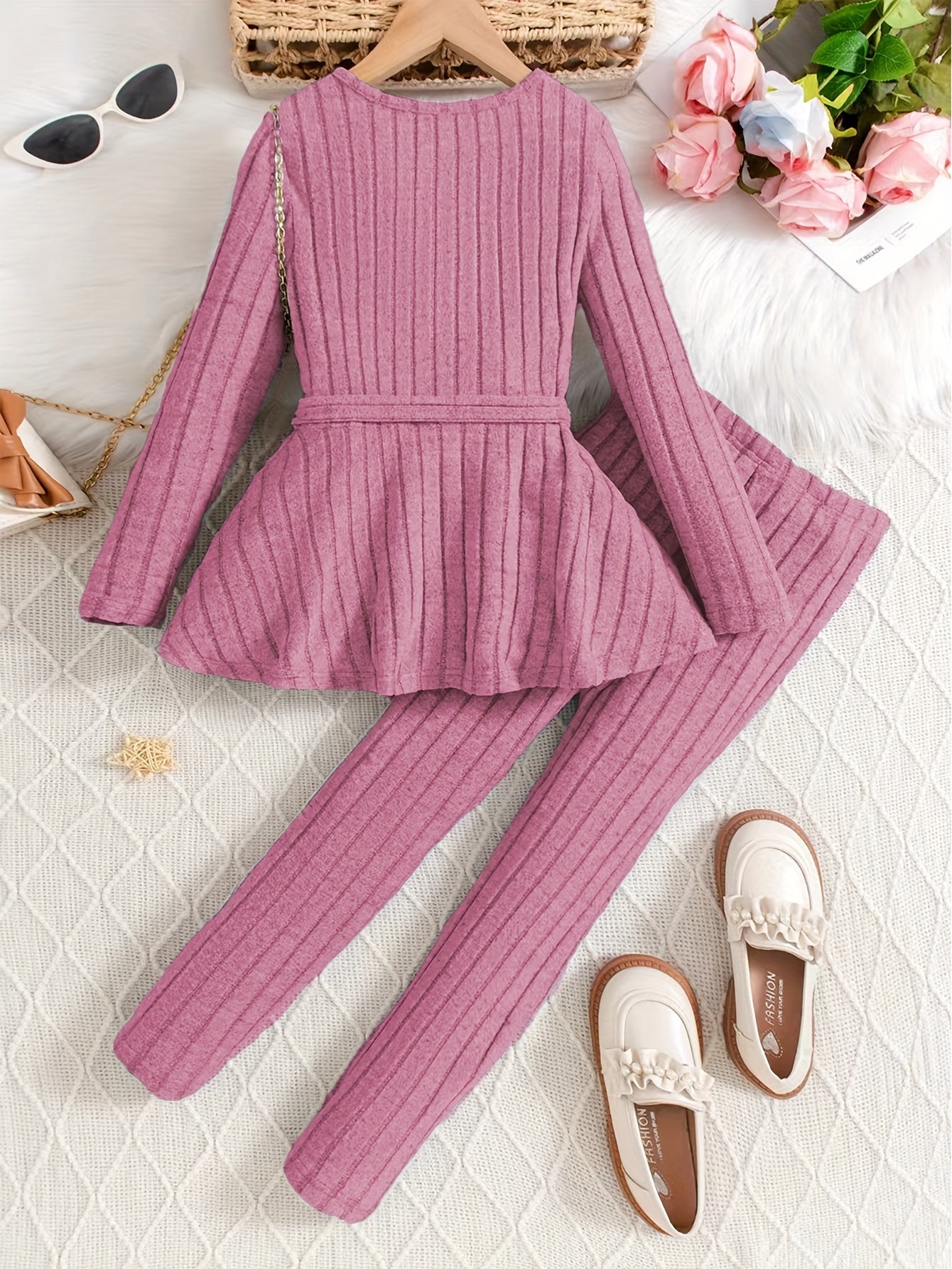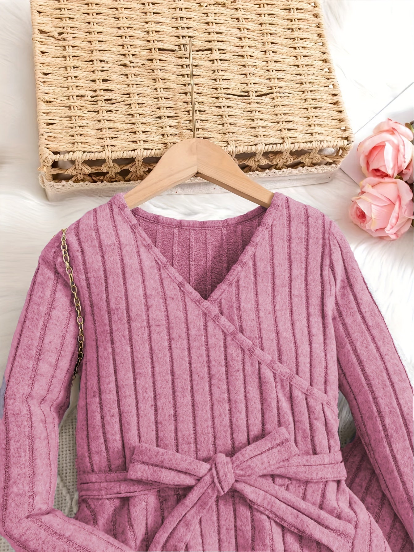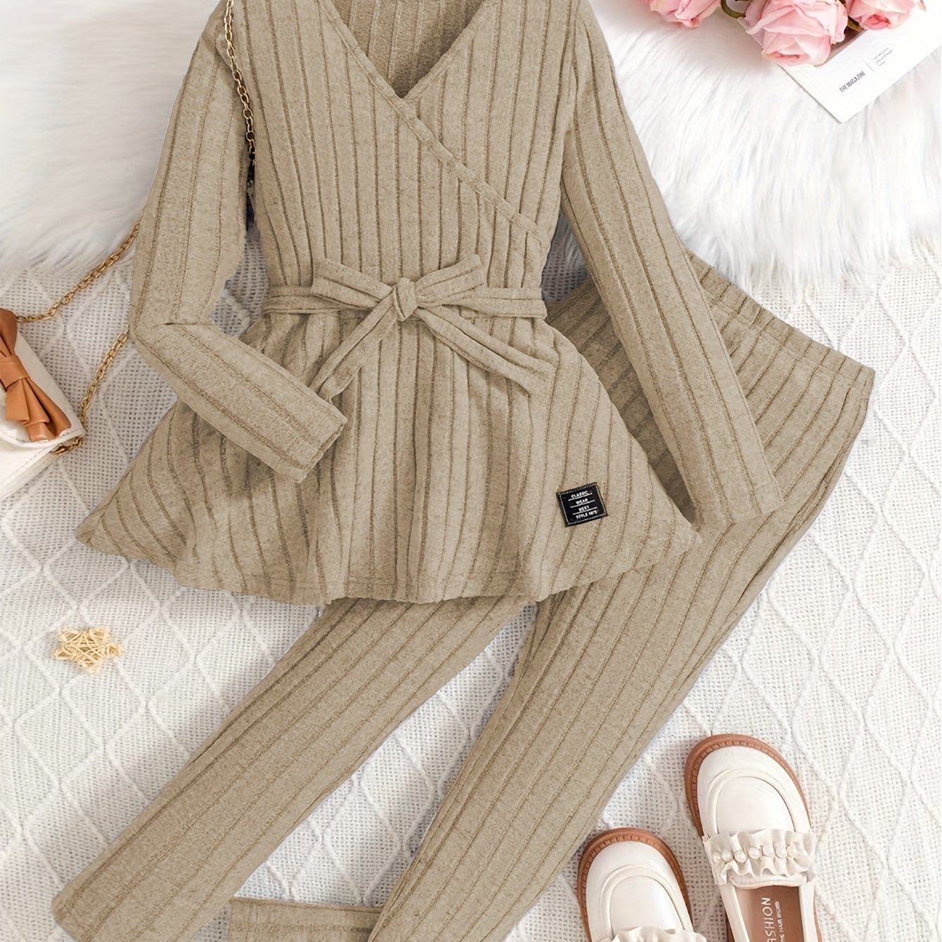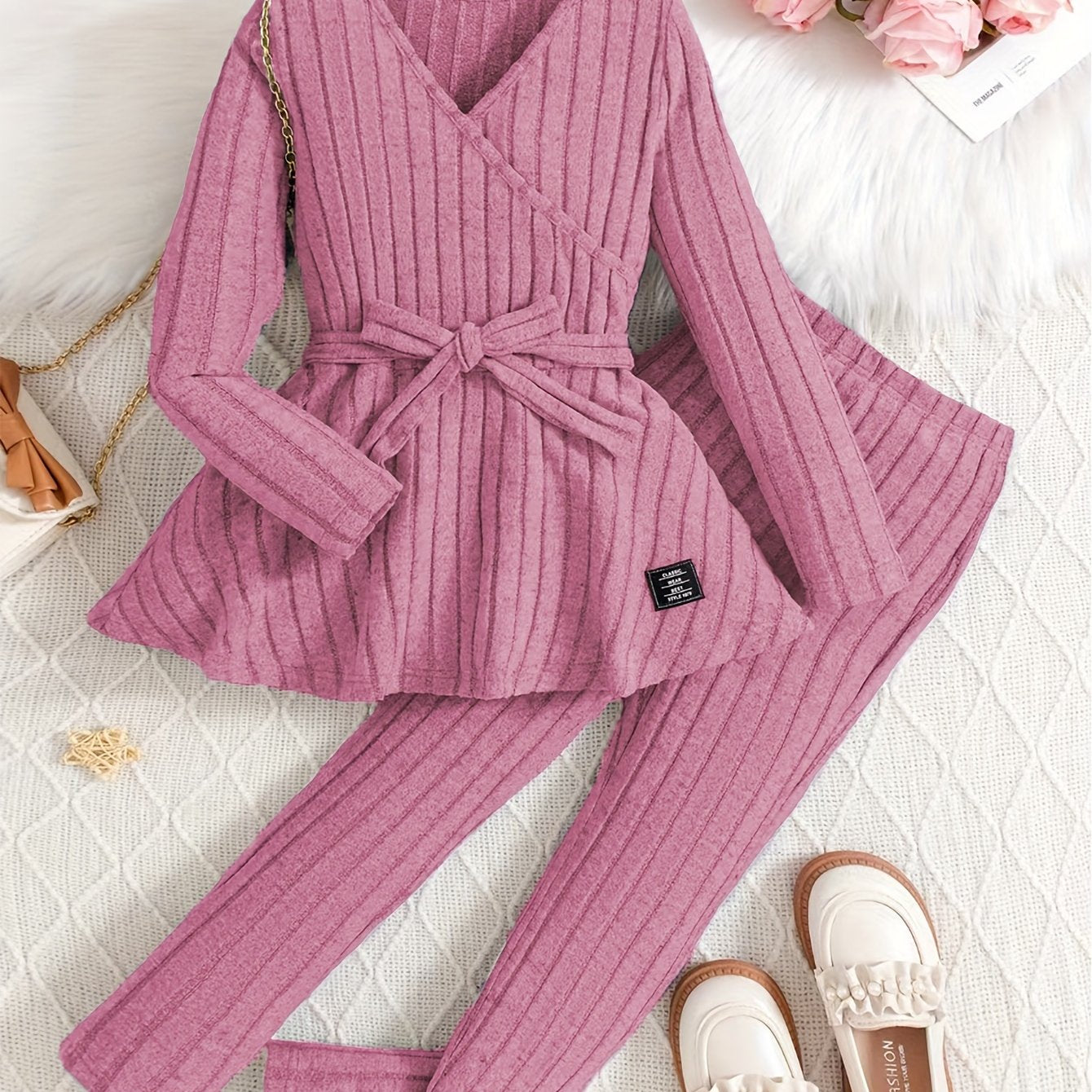 Leggings de rayas de punto de costilla ajustado para niñas primavera verano, con estiramiento medio y amigables con la piel
