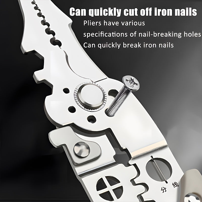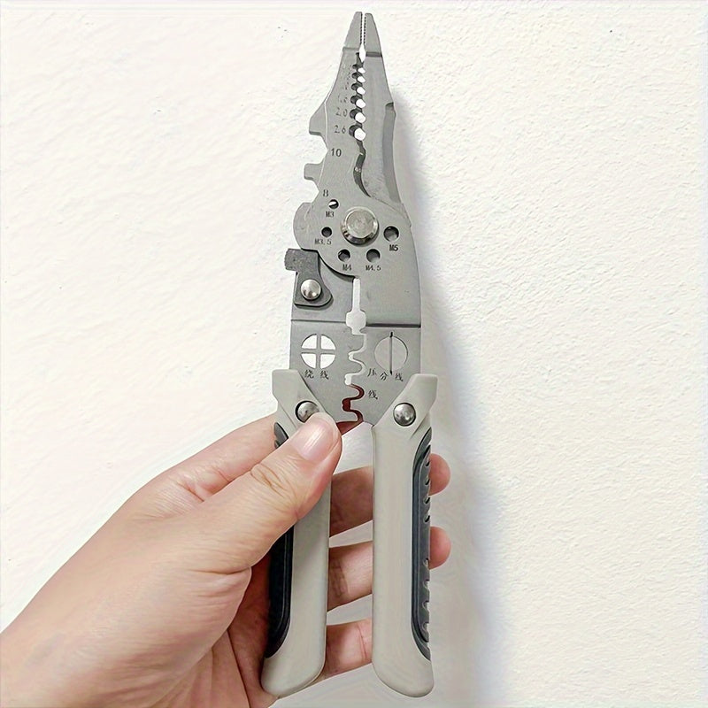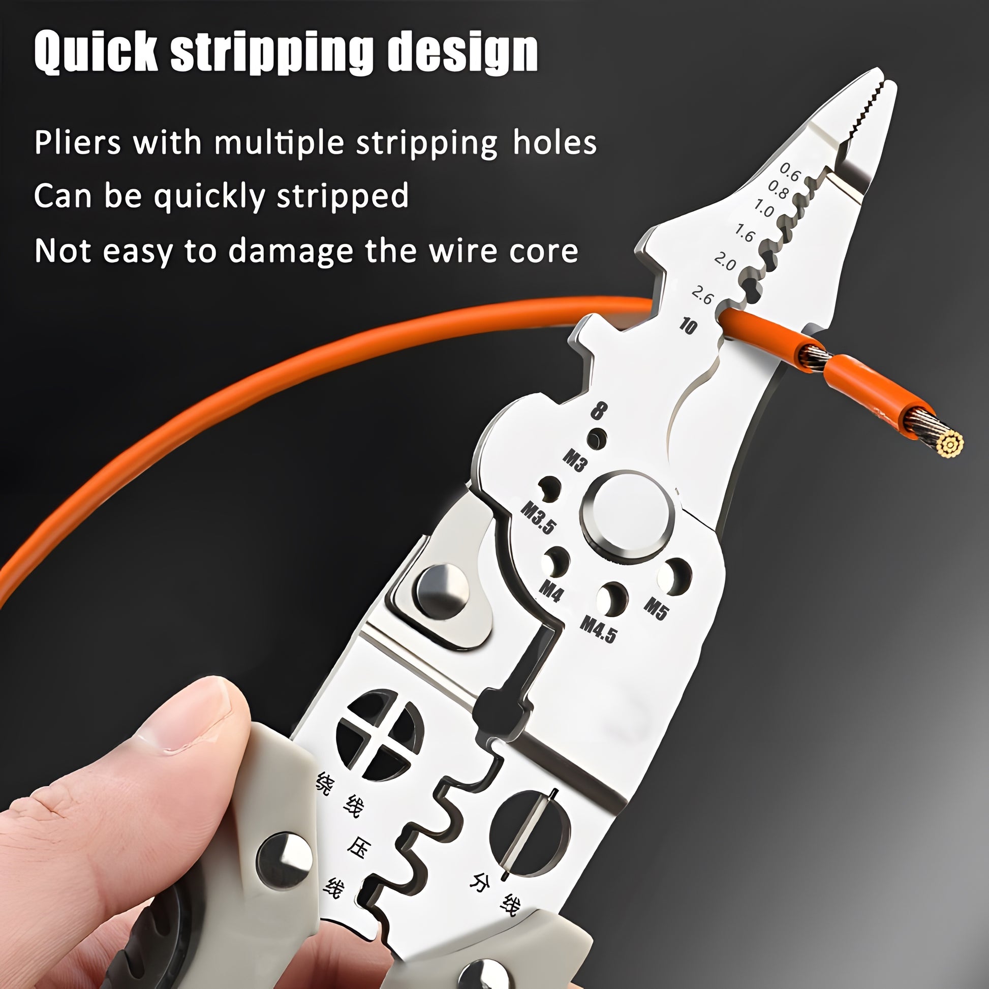 Alicates cortadores y pelacables de acero inoxidable de 21.59cm, herramienta eléctrica industrial multifuncional