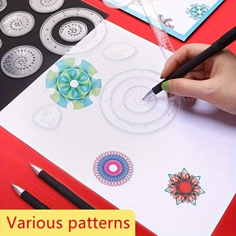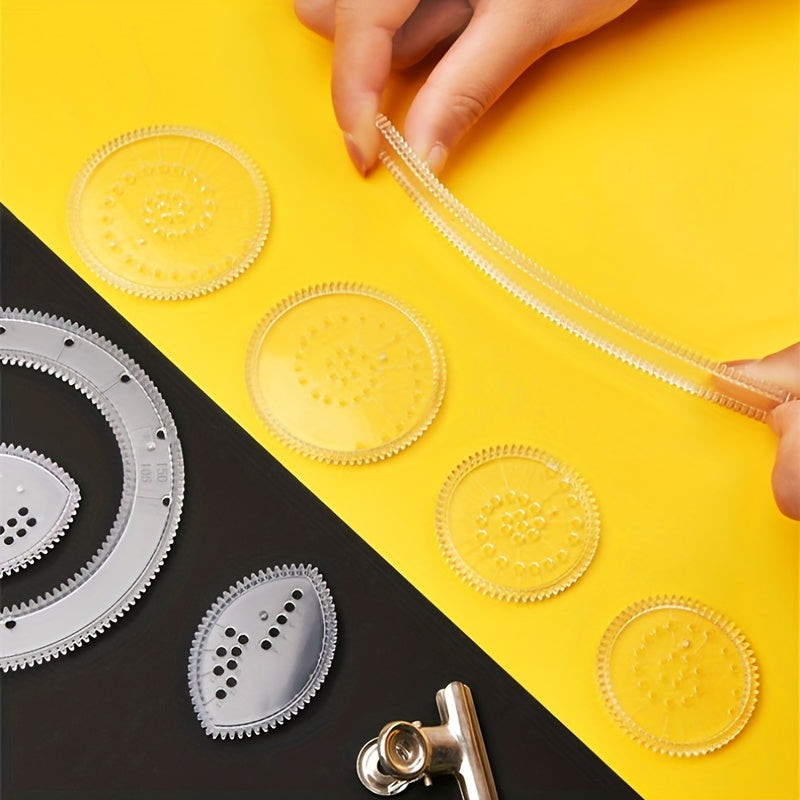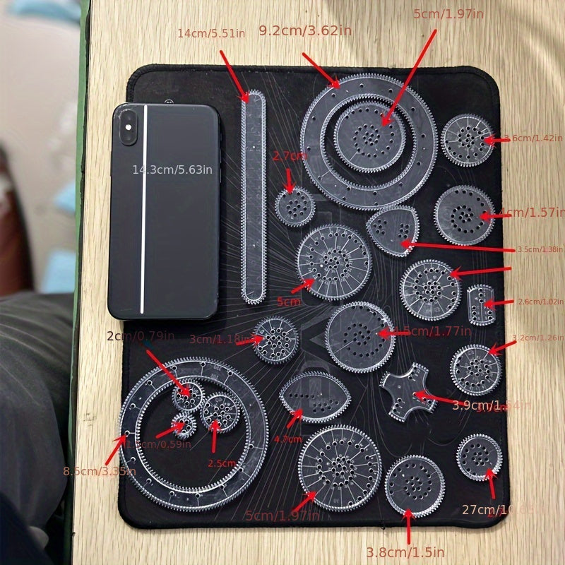 Set de reglas de precisión de 22 piezas para diseños de engranajes con plantillas y marcadores para papel negro