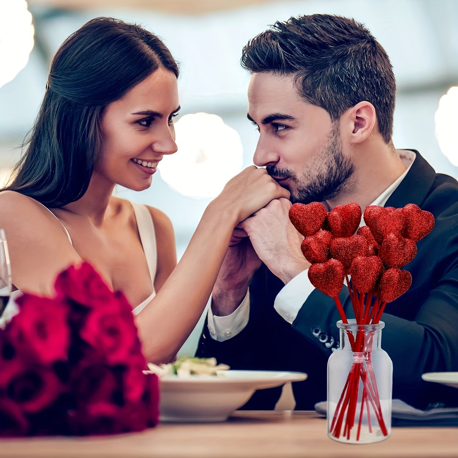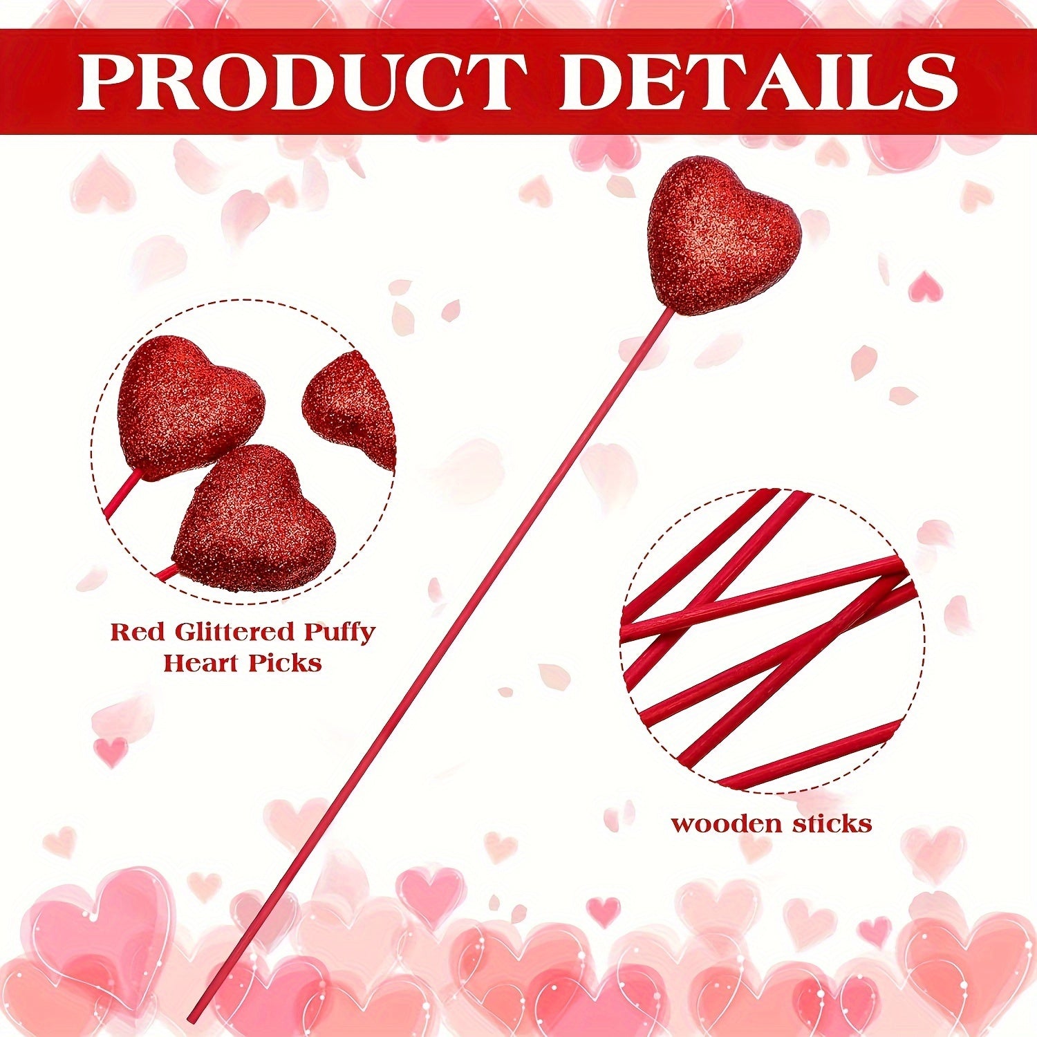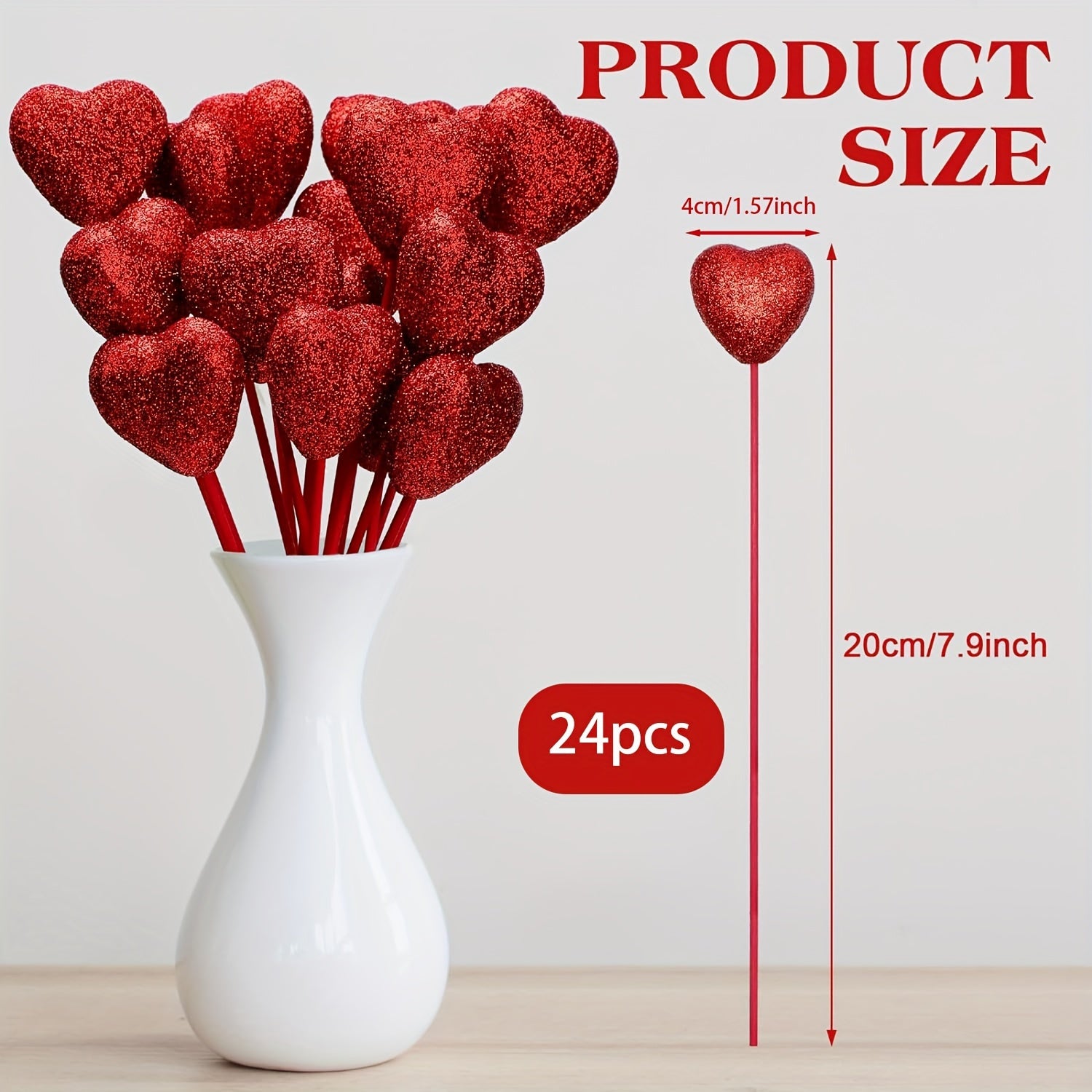 24 Picos de Corazón de Espuma con Brillantina en Rojo y Rosa para el Día de San Valentín y Decoración de Bodas
