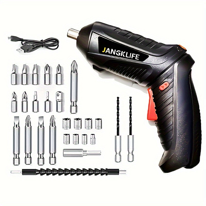 Juego de destornilladores eléctricos de mano de 27 piezas con taladro de mano plegable y rotatorio y brocas